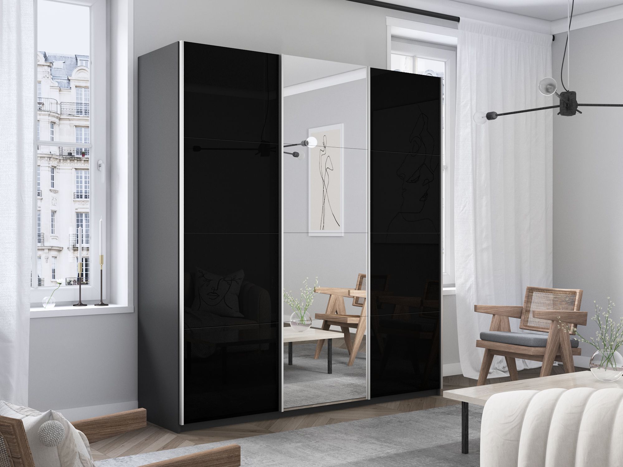 Отзывы о Столплит Шкаф-купе Прайм 3-х дверный Стекла черные/Зеркало/Доводчики 210х57х230 Серый диамант