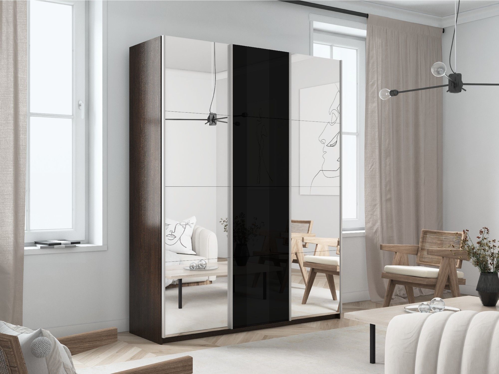 Отзывы о Столплит Шкаф-купе Прайм 3-х дверный Зеркала/Стекло черное/Доводчики 210х57х230 Венге