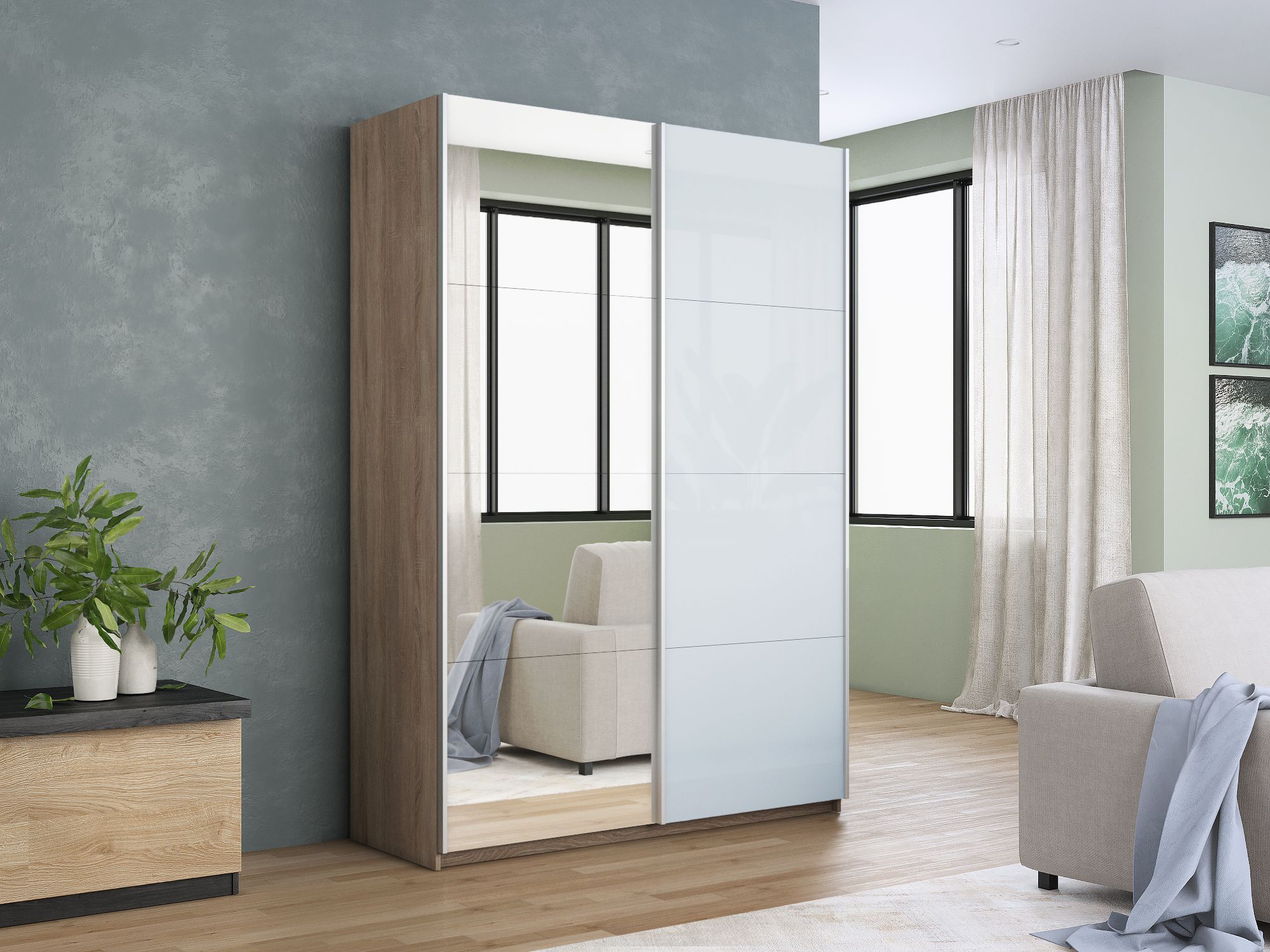 Отзывы о Столплит Шкаф-купе Прайм 2х дверный Зеркало/Белый Глянец 160х57х230 Дуб Сонома
