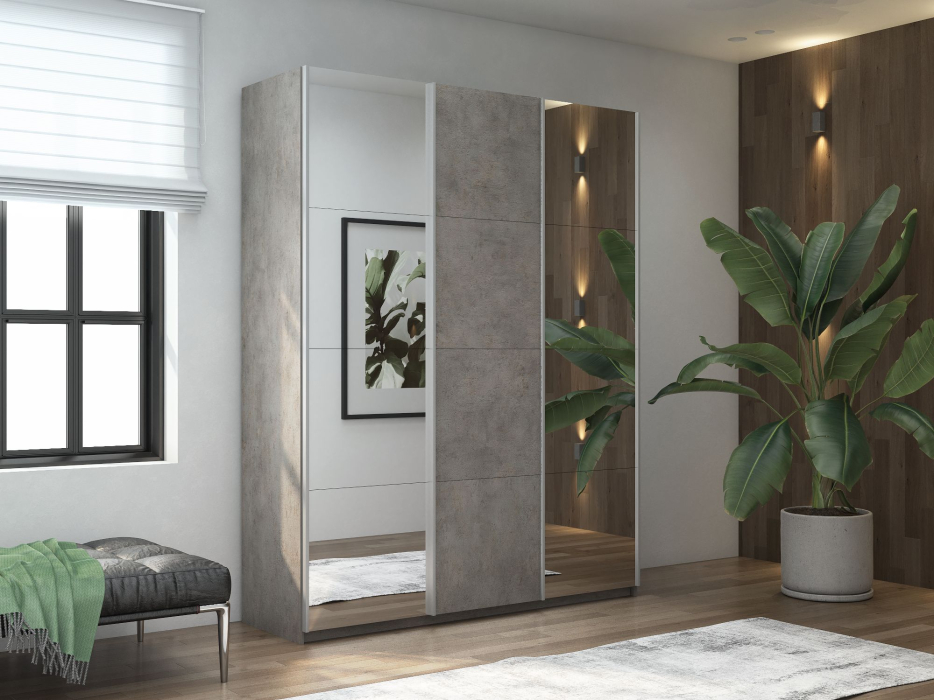 Отзывы о Столплит Шкаф Прайм трио 1ДСП+2 зеркало 2300х2100х570 Бетон
