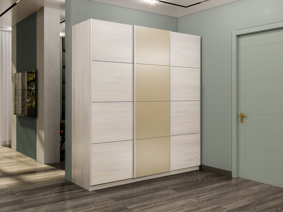 Отзывы о Столплит Шкаф-купе Прайм Широкий 3-х дверный ДСП/Стекла фисташка/Доводчики 240х57х230 Ясень Анкор светлый