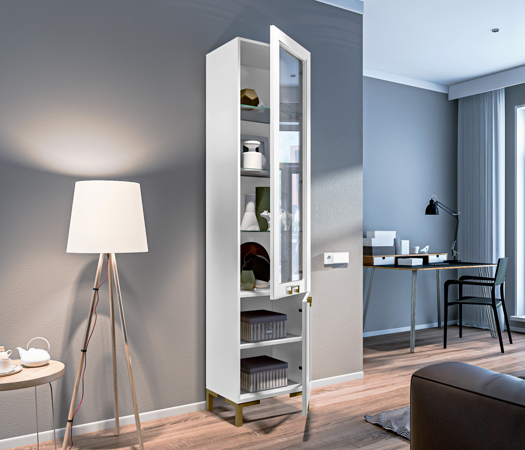 Ассоль СБ-3429 Шкаф-витрина Белый/МДФ БелыйАссоль СБ-3430 Шкаф-пенал Белый/МДФ Белый
