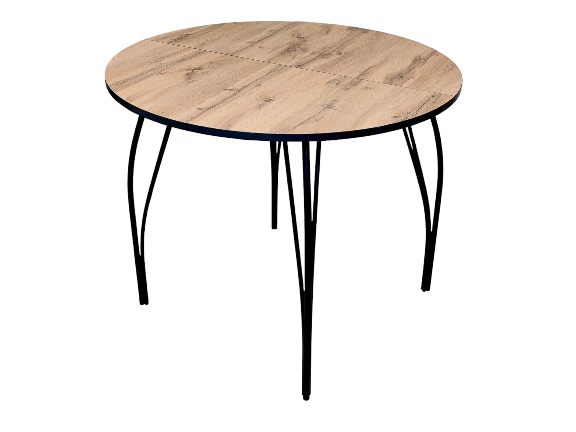 Обеденный стол Барин, D 90-120х75 см., вставка 30 см., материал столешницы: ЛДСП, 18 мм., форма столешницы: круглая, исполнение: двухсторонне, конструкция: раздвижной/безцарговый, механизм раздвижения: синхронный со стопором, торцы столешницы: кромка ПВХ, элегантная металлическая опора, трехлучевая (1/18 мм., и 2/12 мм.), с ПВХ заглушками, порошковая покраска. Форма поставки: в разобранном виде. Вид упаковки: картонная коробка.