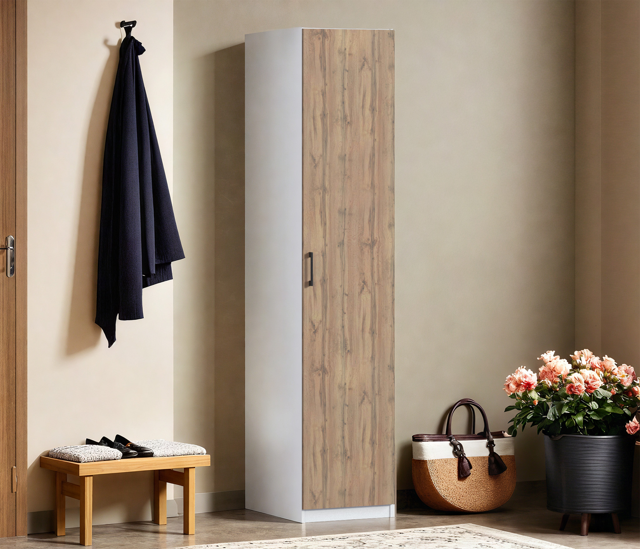 Шкаф однодверный Макс 500 мм, вариант №4 (ЛДСП) (Дуб вотан/Белый)