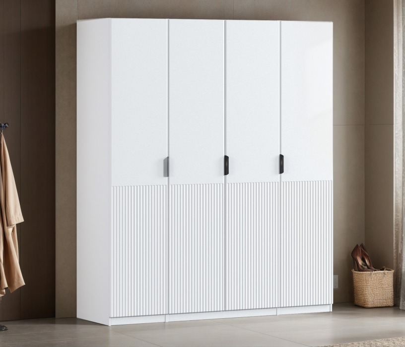 Шкаф четырехдверный Макс 2000 мм, вариант №4 (ЛДСП/МДФ) (Белый)