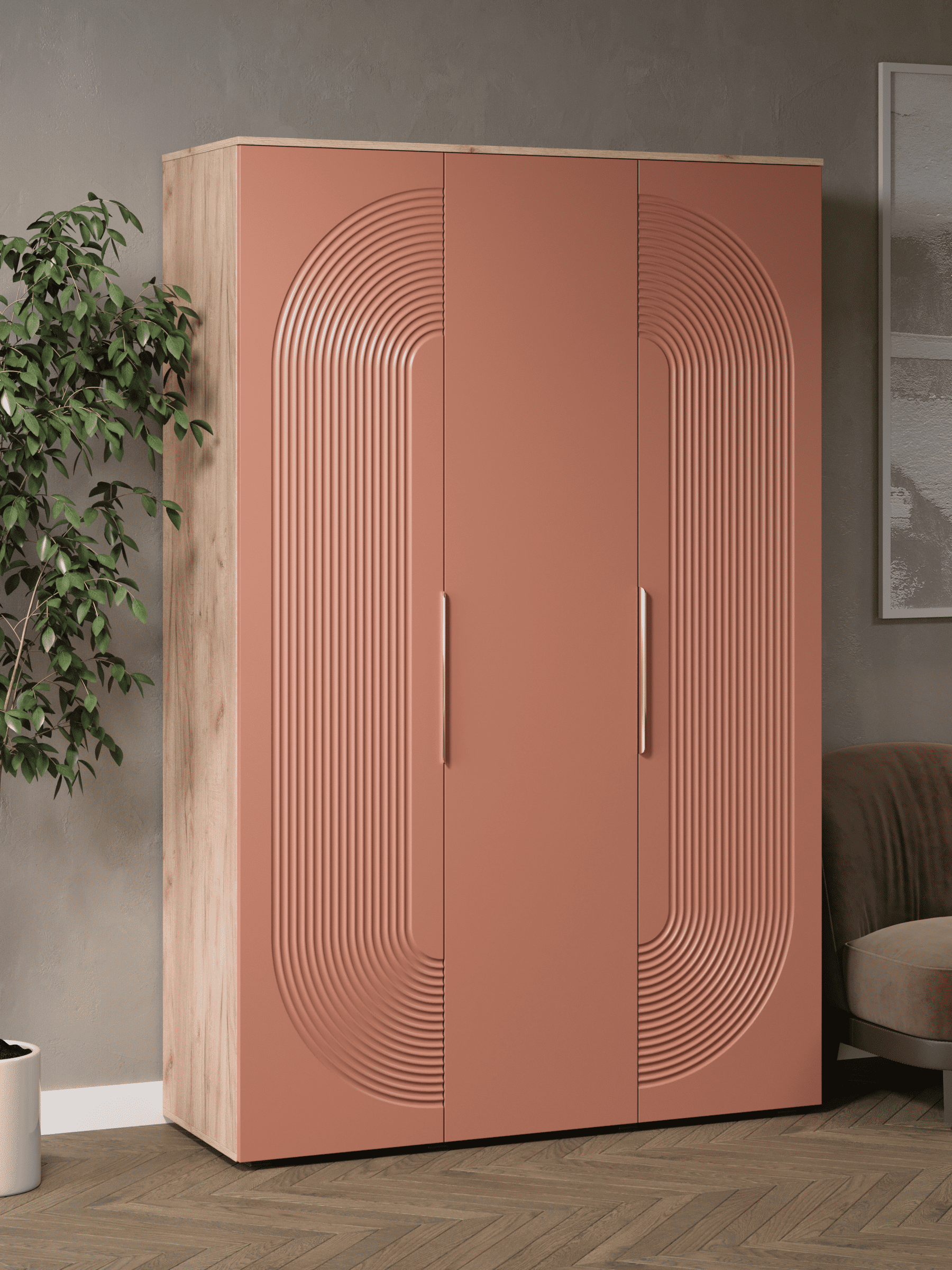 Стильный и практичный распашной шкаф для одежды, решит как минимум две ваших задачи, будет служить многофункциональной нишей для одежды и белья, а также удобным и полезным дополнением в интерьере. Наша модель Ингрия Luxe российского производства выглядят легко и современно, идеально впишется в лофт, скандинавский, современный, минимализм и прочие популярные стили интерьеров. Его минималистичный дизайн придадут легкость и простор всему вашему интерьеру. Шкаф напольный, компактный узкий шкаф сэкономит пространство и организует грамотное хранение вещей в доме. Распашной шкаф для спальни имеет полки и штангу, двери распашные. Ножки изготовлены из прочного массива дерева. Шкаф изготовлен из материалов высокого качества. За высокопрочность и долговечность отвечает корпус, выполненный из ЛДСП, подходит для активного использования. За эстетику и лаконичность дизайна отвечает фасад из МДФ созданный путем сложной фрезеровки в виде геометрического 3D рисунка. Накладная алюминиевая ручка подчеркнет монолитный образ. Длинный высокий шкаф пенал поставляется в разобранном виде, пусть это вас не пугает. В комплекте предусмотрены все необходимые комплектующие, подробная инструкция и фурнитура. Сборка не потребует особых навыков и не отнимет много времени.Современная корпусная мебель для дома должна не только брать на себя пару задач по организации пространства, но и гармонично смотреться, выполняя нужные нам функции. Поэтому шкаф для прихожей можно использовать в разных помещениях в гостиной, спальне, прихожей (коридоре), в детской, в офисе, в салоне красоты, на балконе. Он справится со всеми возложенными на него функциями. Используйте шкаф купе, как модуль мебельный под аксессуары, коробки с обувью, как нишу для детских книг и игрушек.Перед отправкой мебели, каждое изделие проходит проверку на наличие брака. Для целостности и сохранности каждого изделия мы разработали усиленную, надежную упаковку. Европейское качество от российского производителя - по доступным ценам.