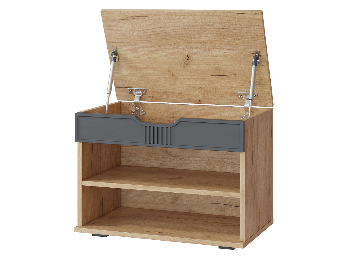 Тумба для обуви Эмилия ЭЛ-44К – компактная модель для комфортного переобувания в прихожую. Лаконичное изделие оборудовано двумя полками для обуви и мягким сиденьем, под которым находится удобный ящик для хранения чистящих средств, щеток или зонта. Ткань мягкой части велюр, наполнение: поролон 40 мм, синтепон, белый флизелин. Высота опоры 20 мм.