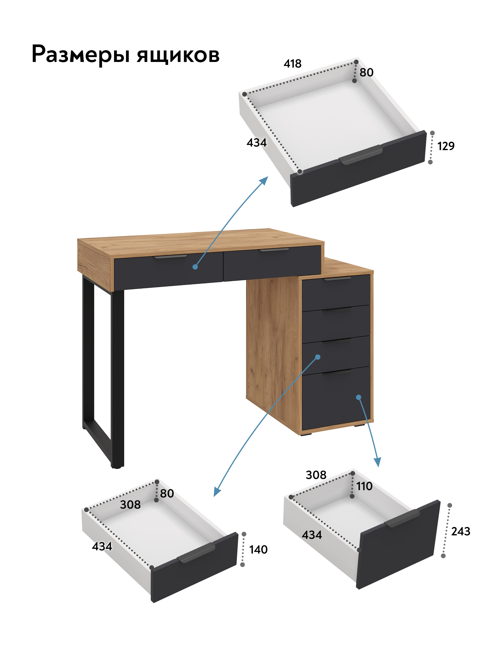Универсальность: подходит для использования в качестве письменного, компьютерного или маникюрного стола. Рекомендуется высокий стул. Фурнитура: телескопические направляющие полного выдвижения без доводчиков, металлические ручки и опора.