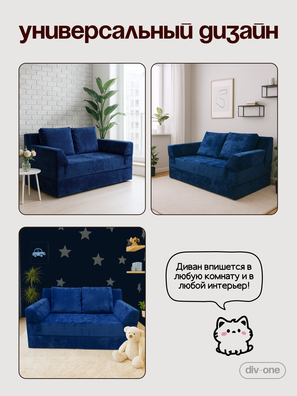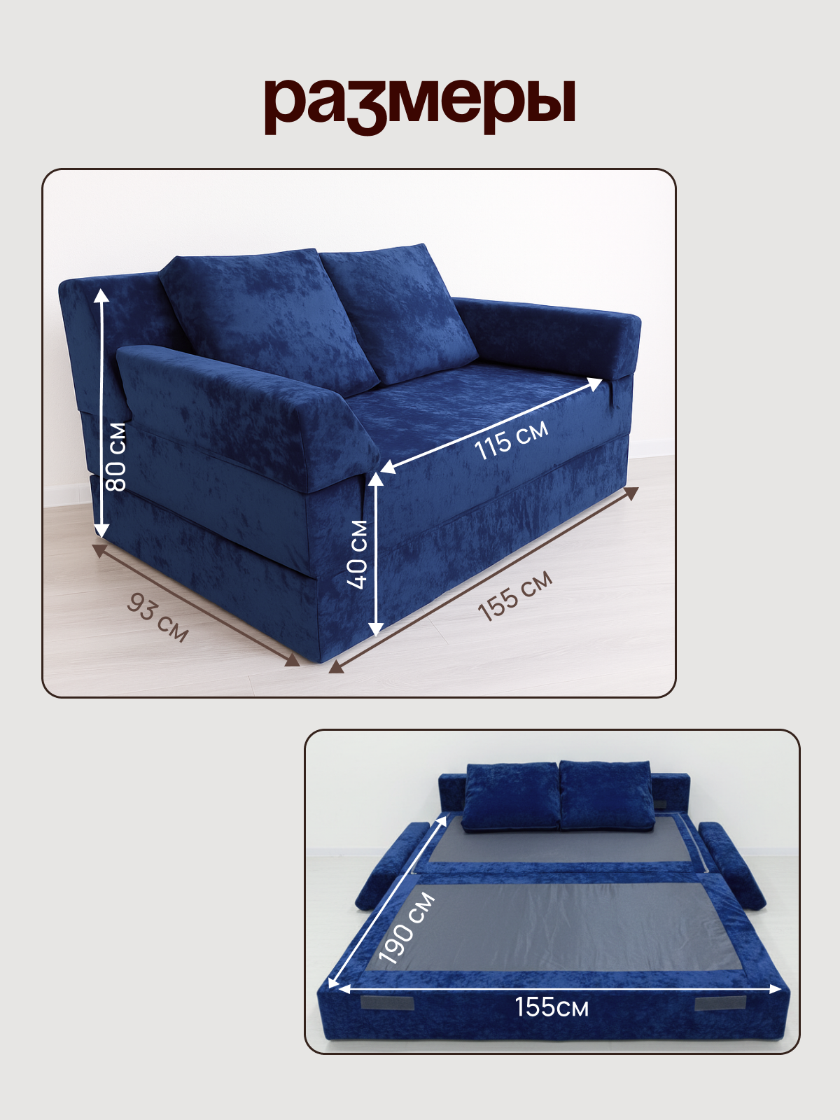 Экологически чистые материалы и продуманный дизайн позволят создать уютную атмосферу в комнате. Удобные съемные подушки обеспечивают дополнительный комфорт во время отдыха, а легкость конструкции позволяет без труда перемещать диван из комнаты в комнату. Книжка подходит не только для квартиры, но и для дачи. Стильный вид впишется в любой интерьер — от лофта до модерна.