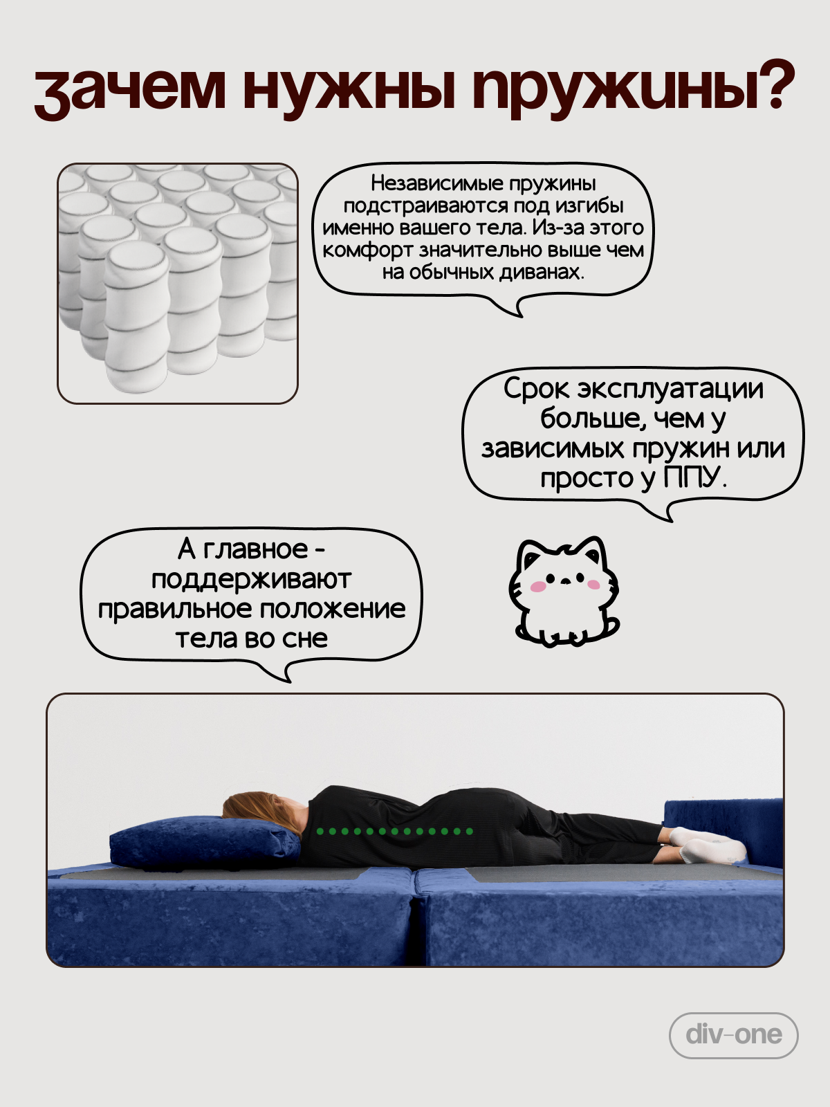 Диапазон возможностей делает его идеальным для малогабаритных квартир, где важна каждая деталь. Использование высококачественного микровелюра в обивке обеспечивает долговечность и легкость в очищении, что особенно важно для семей с детьми, подростками и домашними животными. Антивандальное покрытие защитит диван от повреждений, а его спальное место создано для комфортного отдыха, обеспечивая необходимую поддержку благодаря высокоэластичному пенополиуретану. Наружный чехол легко снимается для чистки благодаря застежкам-молниям.