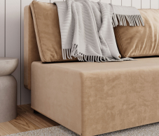 претензия только к производителю по упаковке. да и сам материал очень дешевит эту модель. была очень разочарована. отстрочка подушек неровная, местами торчащая набивка из швов. да и сама набивка в подушках паралон нарезанный брусочками - это не то что на ощупь, но и визуально видно через тонкую ткань((( в общем если хотите сэкономить, то рассчитывайте получить товар даже не среднего качества