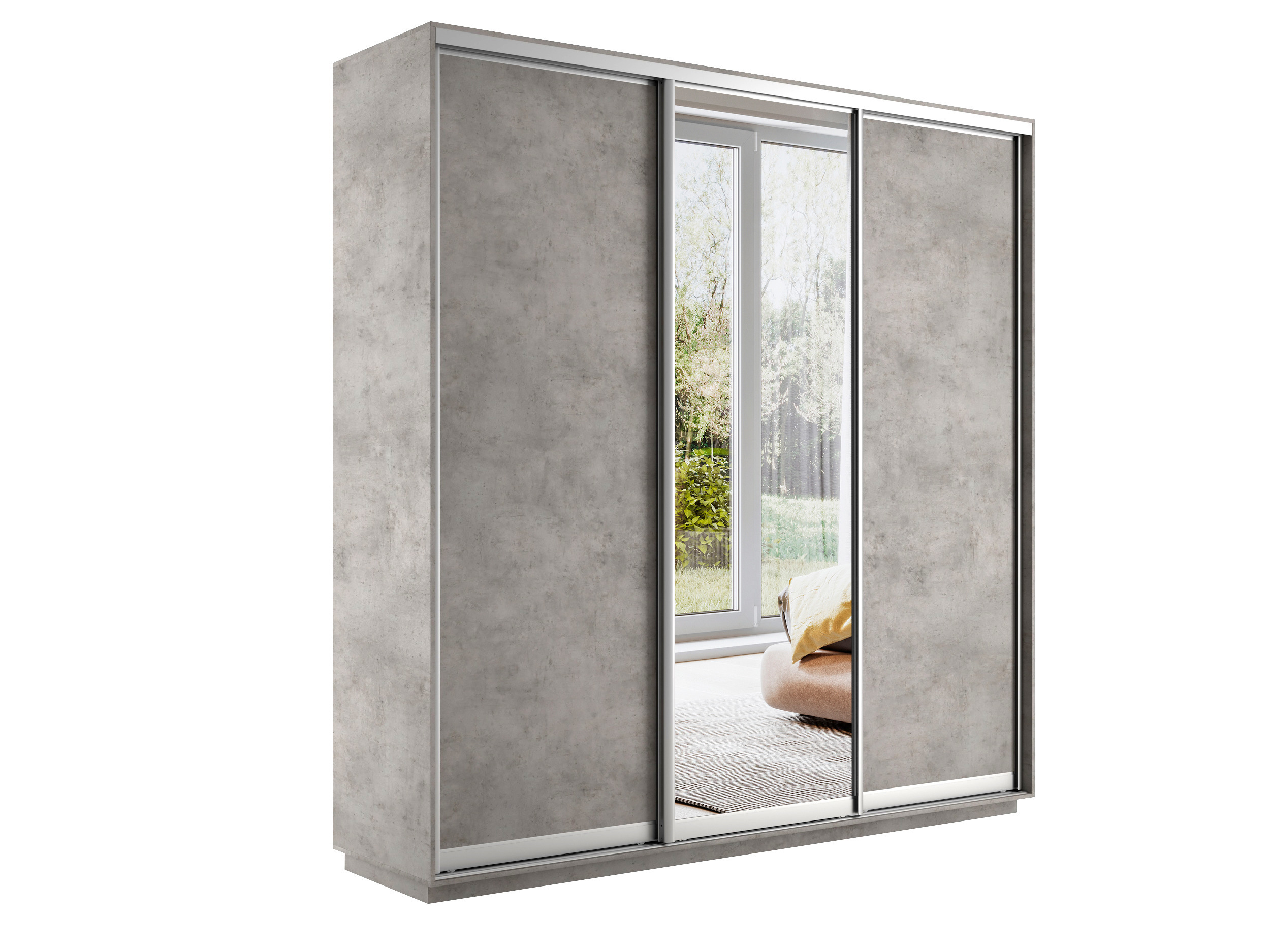 Отзывы о Столплит Шкаф-купе Экспресс Медиум (1 зеркало) трио 2400 x 2400 x 600 Бетон серый