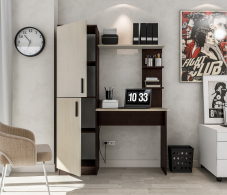 Стеллаж со столом "Тесса" - прекрасное решение для организации рабочего места в комнате ребенка или для домашнего офиса. Широкое рабочее место, полочки для памятных аксессуаров и закрытый шкаф для учебников и тетрадей.