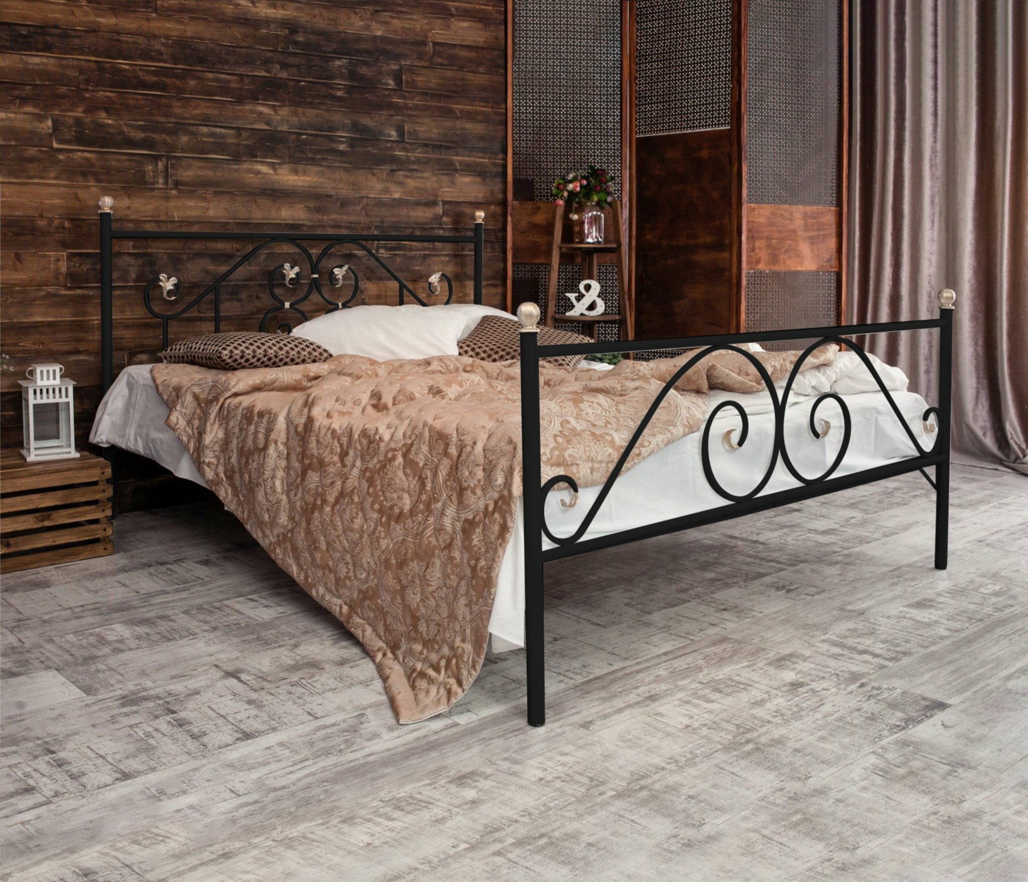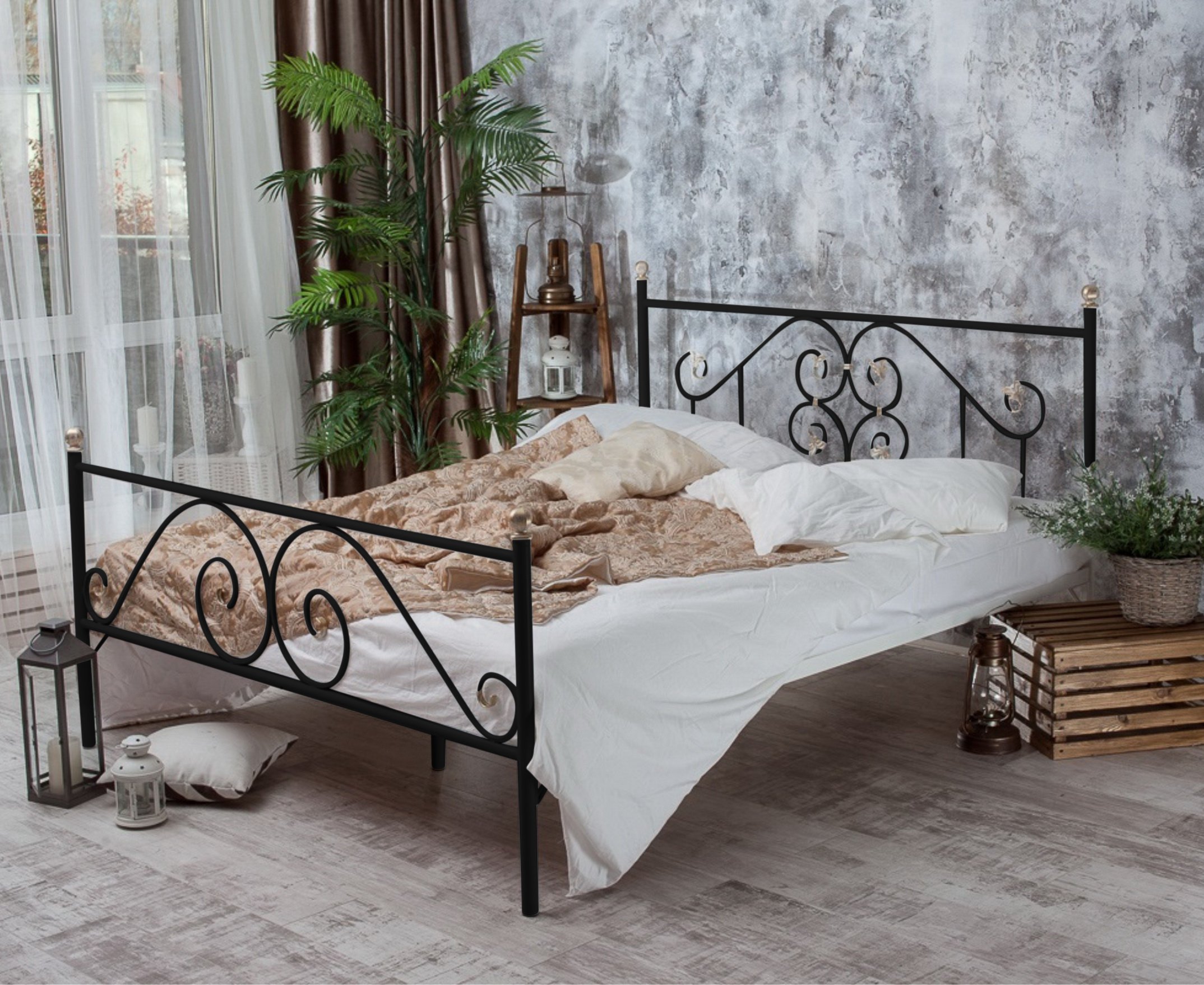 Кованая кровать Камелия 1.4 с двумя спинками (Черный)