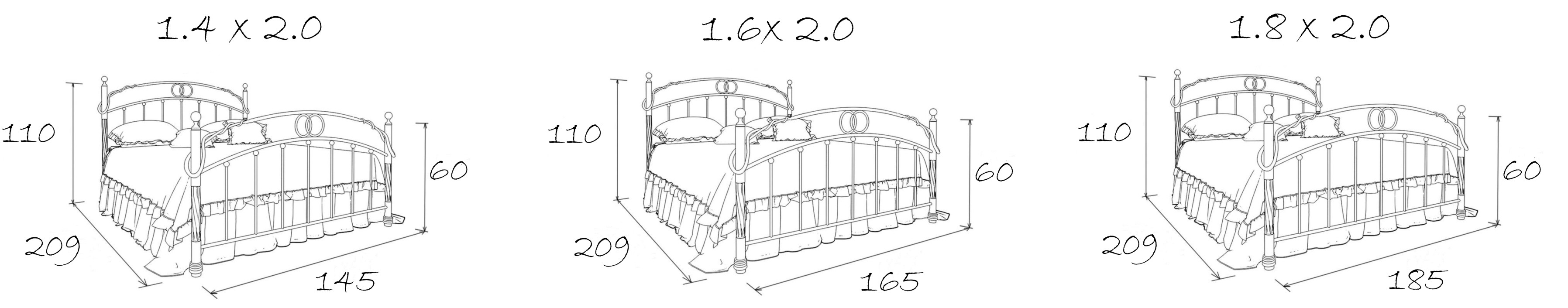 Размеры спального места (ДхШ) 2000х1600. Высота изножья 600 мм.