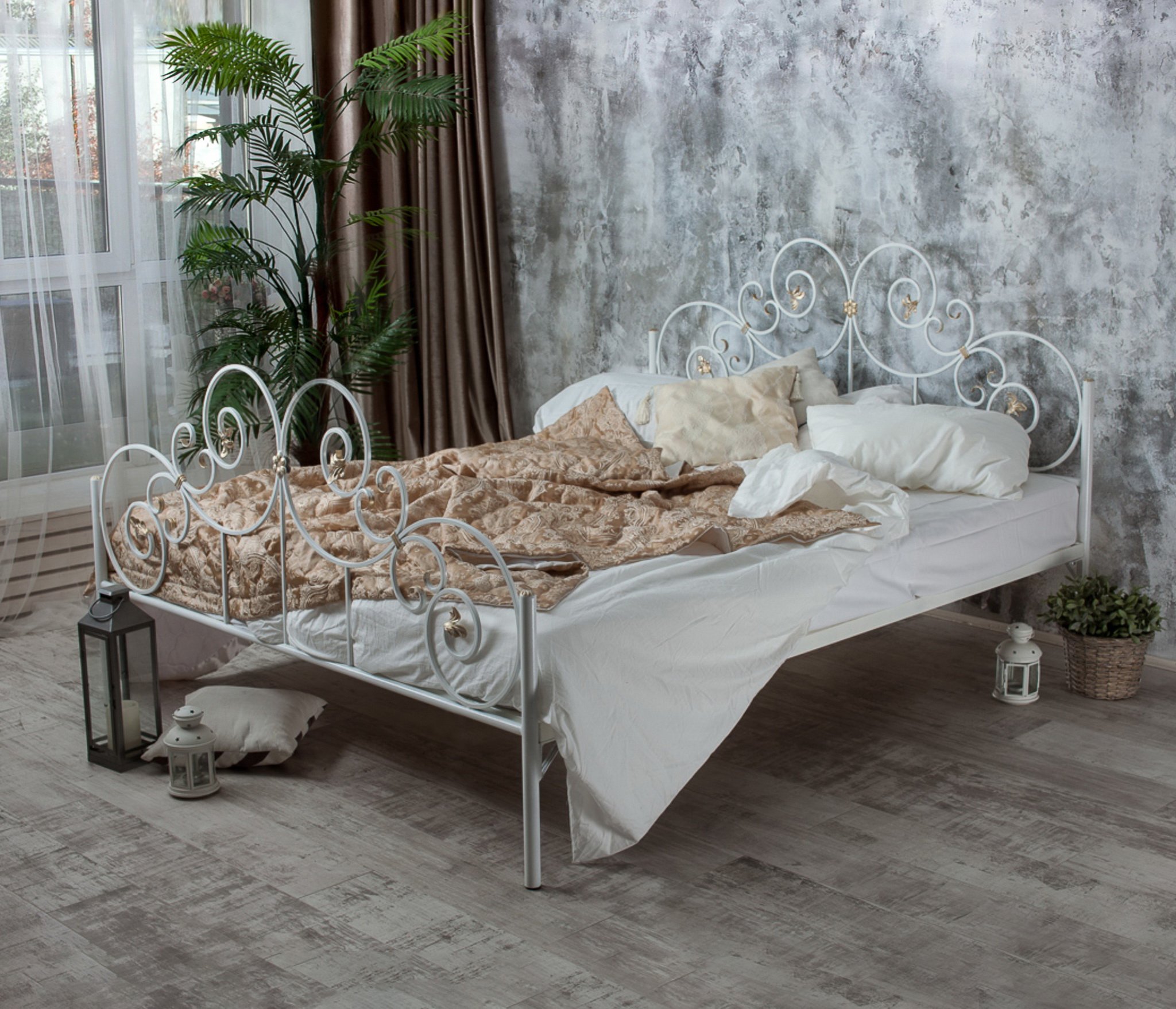 Кованая кровать Афина - изысканная и благородная модель, которая сочетает в себе утонченность дизайна и надежность качественных материалов исполнения. Шикарная кованая кровать Афина одна из самых популярных моделей в нашей линейке кроватей.
