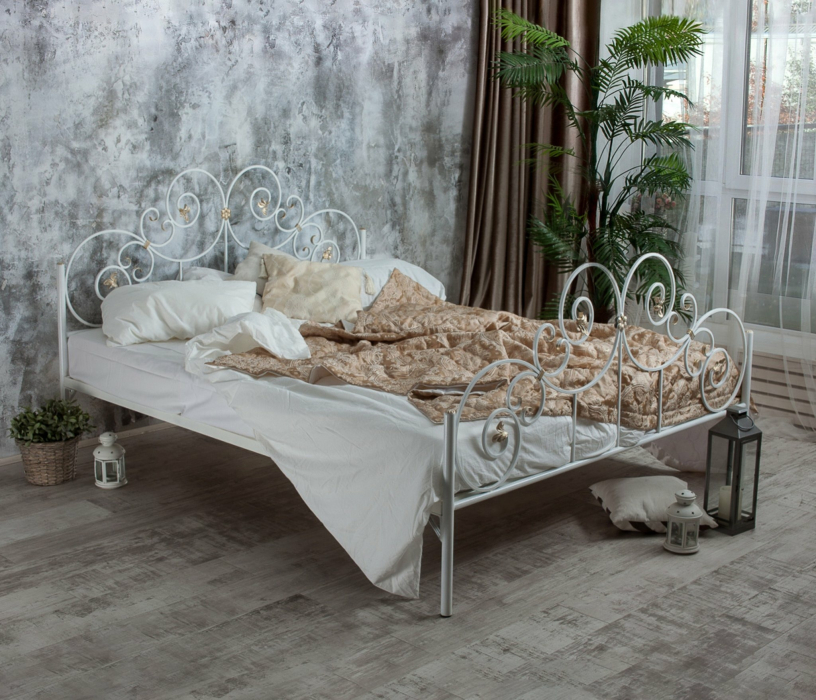 Кованая кровать Афина 1.8 с двумя спинками (Белый)