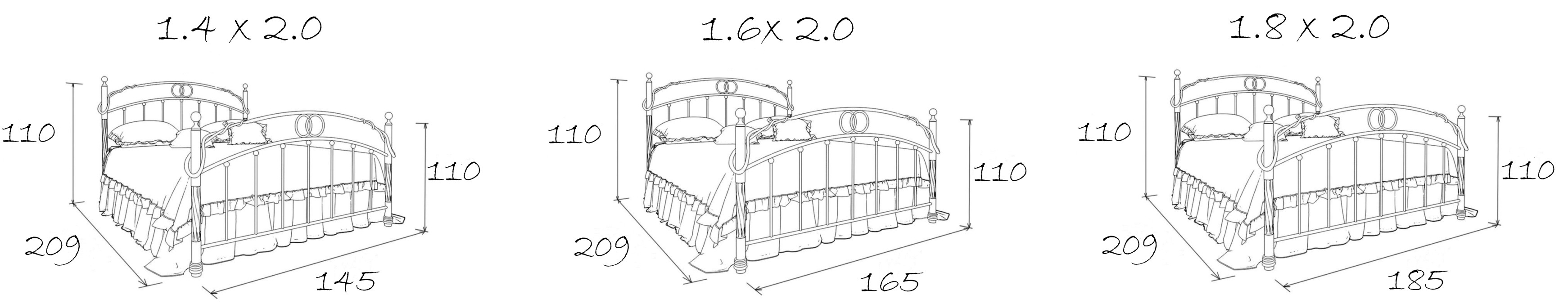 Размеры спального места (ДхШ) 2000х1600. Высота изножья 1100 мм.