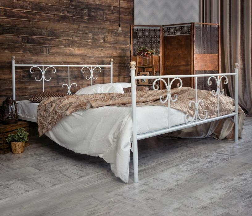Кованая кровать Симона 1.8 с двумя спинками (Белый)