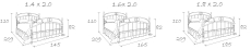 Размеры спального места (ДхШ) 2000х1600, высота изножья 820, мммаксимальная нагрузка на 1 спальное место - 150 кг.