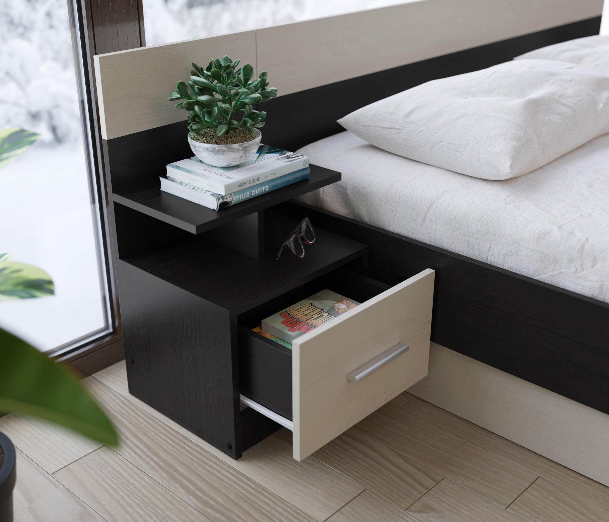 Очень удобный спальный гарнитур.Шикарно вписался в спальную комнату.Большая кровать160/200.Большие и широкие полки, вместительный комод и тумба.Цена ниже качества, можно сказать.Доставили быстро.Сборщик тоже мастер своего дела, за полтора , где-то часа управился.В общем, рекомендую.