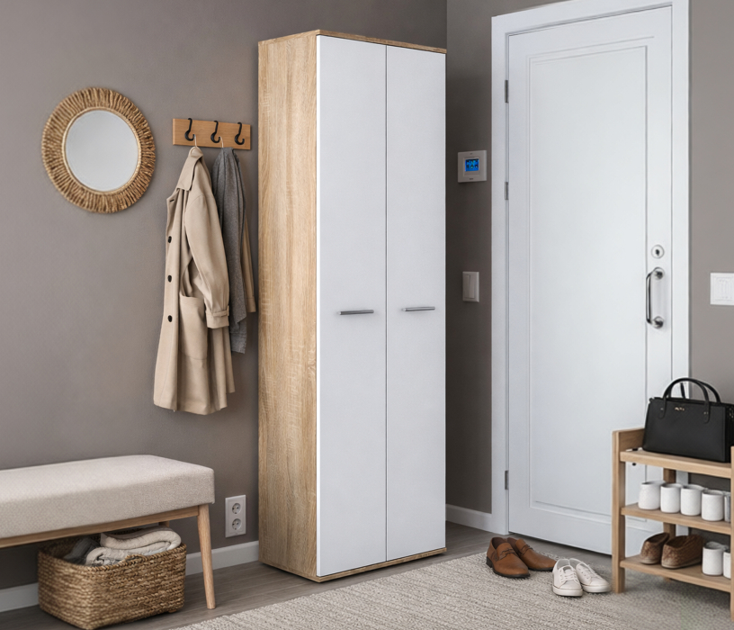Двухдверный шкаф Мамбо СБ-2878 – компактное решение вопроса, связанного с хранением вещей. Благодаря минималистичному дизайну, шкаф можно разместить на небольшой площади в прихожей, детской комнате или офисе. Он может быть отдельным предметом мебели, а также частью гарнитура.