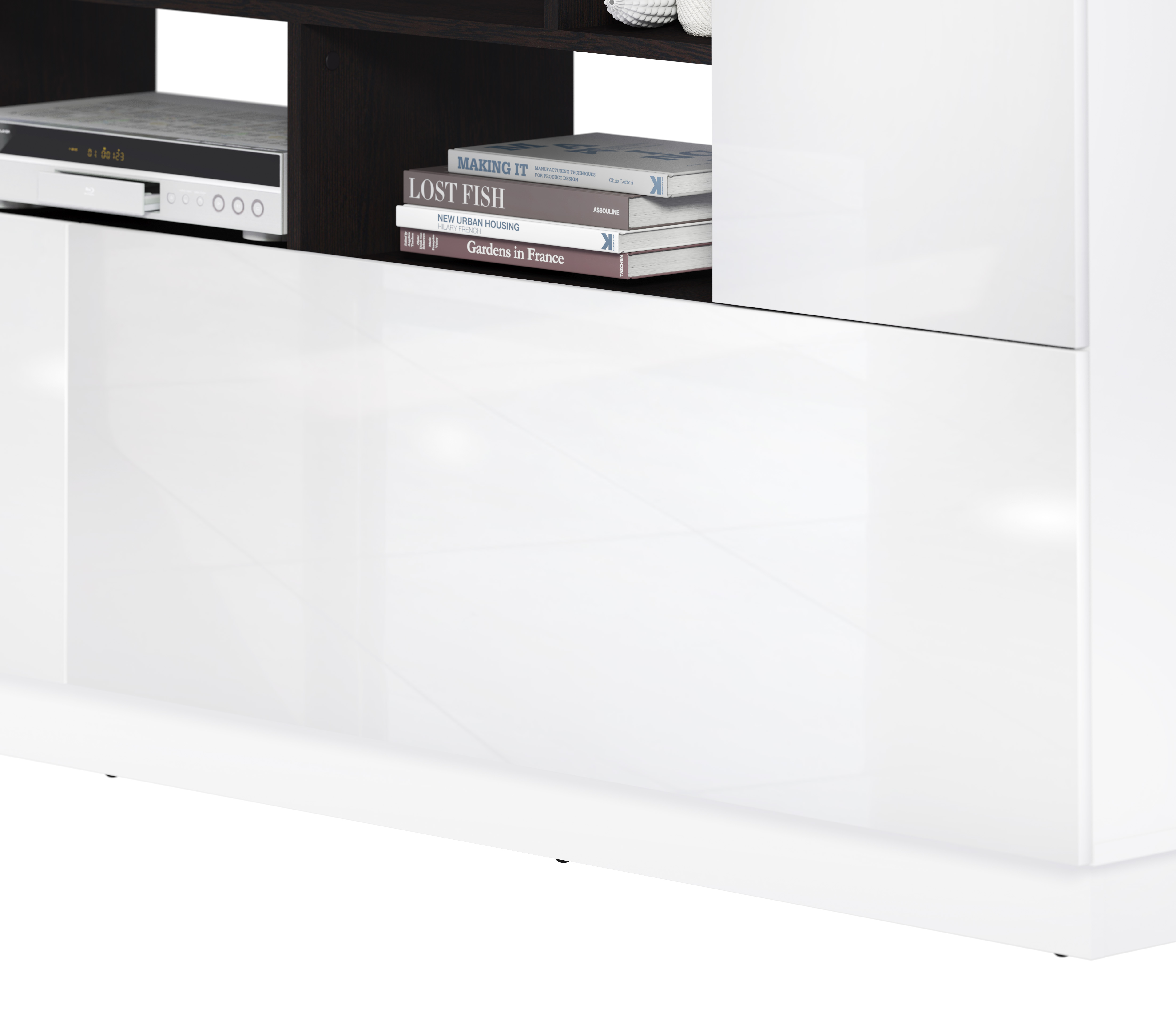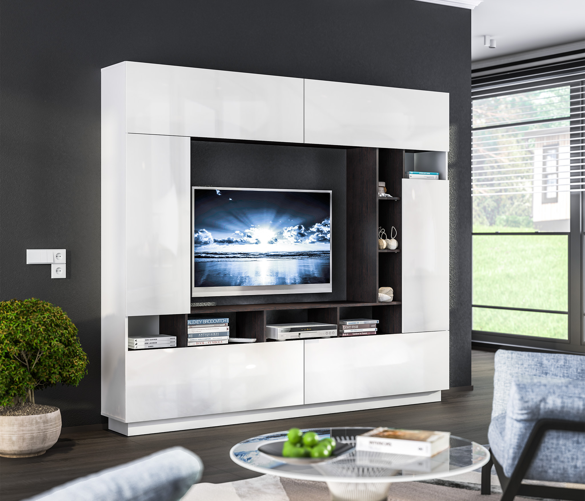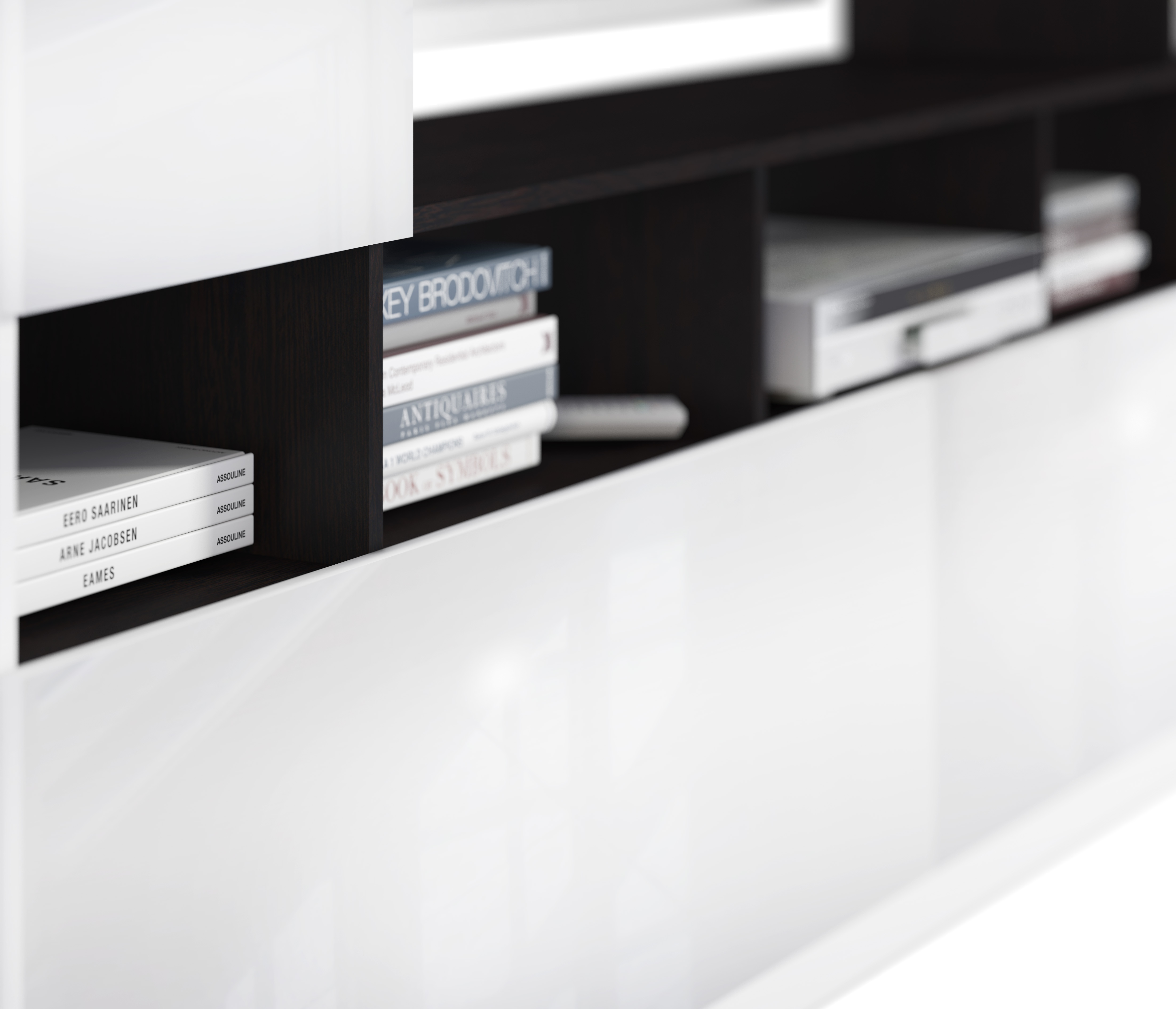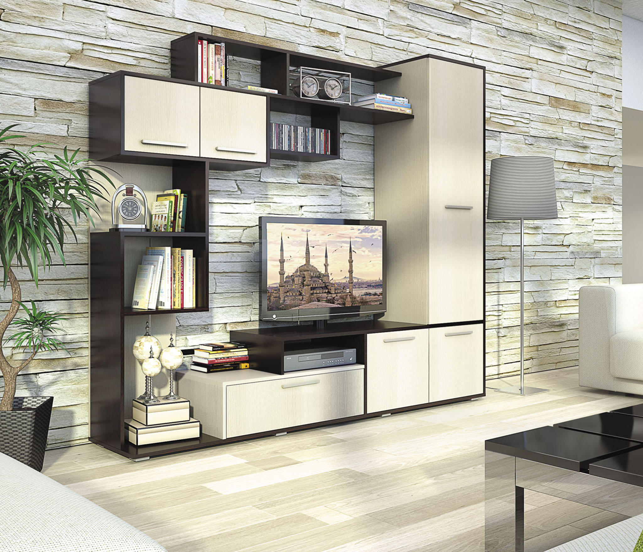 Стенка Нео СБ-2898 – практичный и стильный предмет мебели, который станет идеальным дополнением интерьера гостиной. Органично смотрится соло. Габаритные размеры – ширина 232 см, высота 206 см, глубина 34 см. В состав стенки входит: тумба под телевизор с открытыми полками для видео, аудио аппаратуры и отделениями с непрозрачными дверцами, открытая витрина для демонстрации коллекции декоративной посуды или памятных сувениров, шкафы для книг, посуды. Корпус стенки выполнен из КДСП, фасады - из МДФ в актуальном цветовом решении.