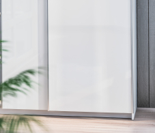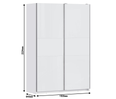 Габариты шкафа - ширина 150 см, высота 222 см, глубина 64 см.Шкаф включает в себя два отделения. В одном отделении располагается пять вместительных полок, а второе отделение оснащено штангой для одежды и верхней полкой. Корпус модели выполнен из КДСП, фасады - из ЛДСП. Благодаря универсальному белому цвету, шкаф-купе впишется в любой интерьер.