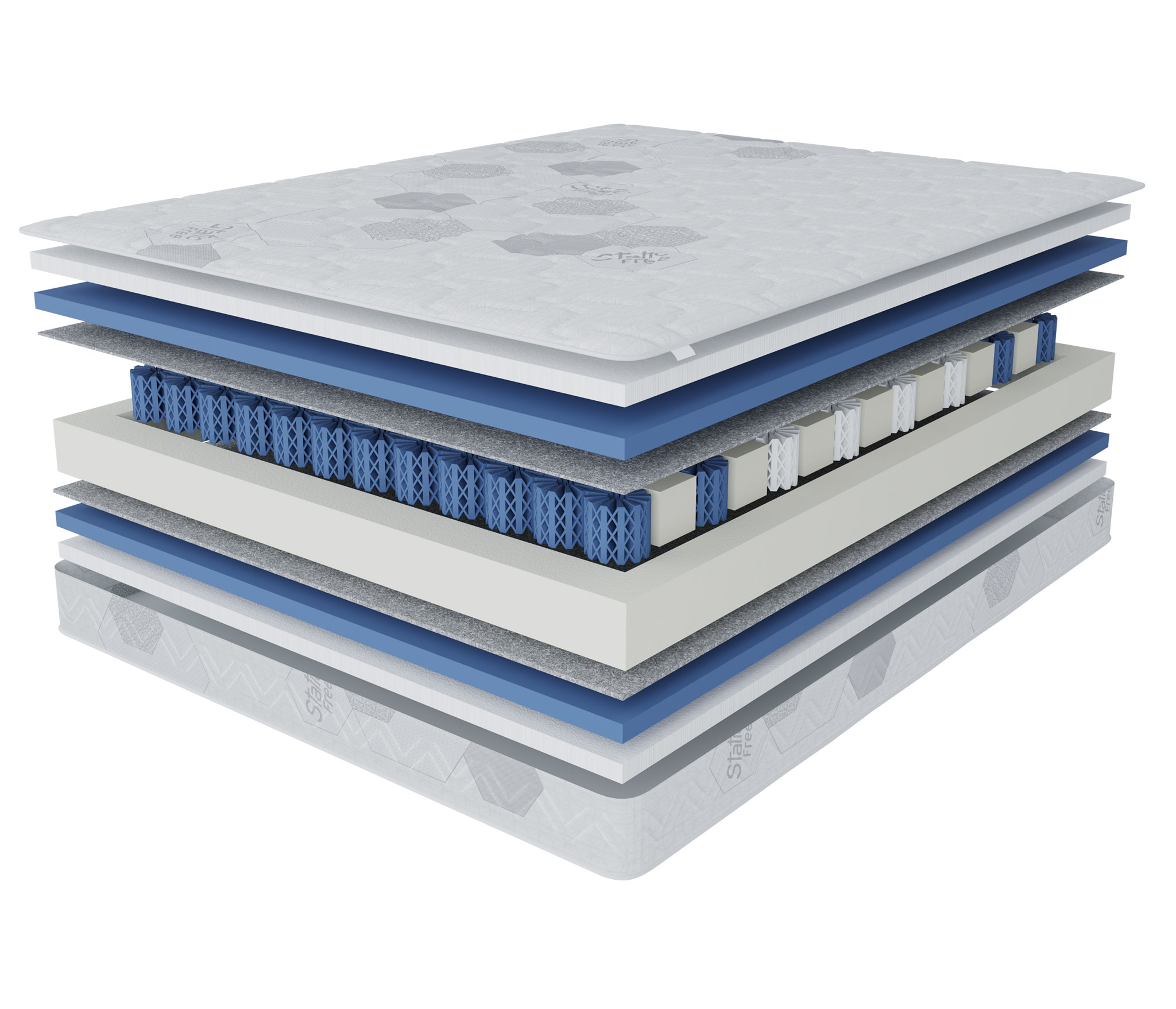 Пена Sky Cell дарит упругую поддержку и комфортную высокую жесткость. Она прекрасно распределяет нагрузку и обеспечивает качественную опору каждой части тела человека. Ребра жесткости из высокоплотной пены по всей площади матраса обеспечивают уникальную упругость, дарящую здоровый сон и заряд бодрости на весь день. Повышенная воздухопроницаемость пружин Octaspring обеспечивает комфортную свежесть спального места на протяжении всей ночи.