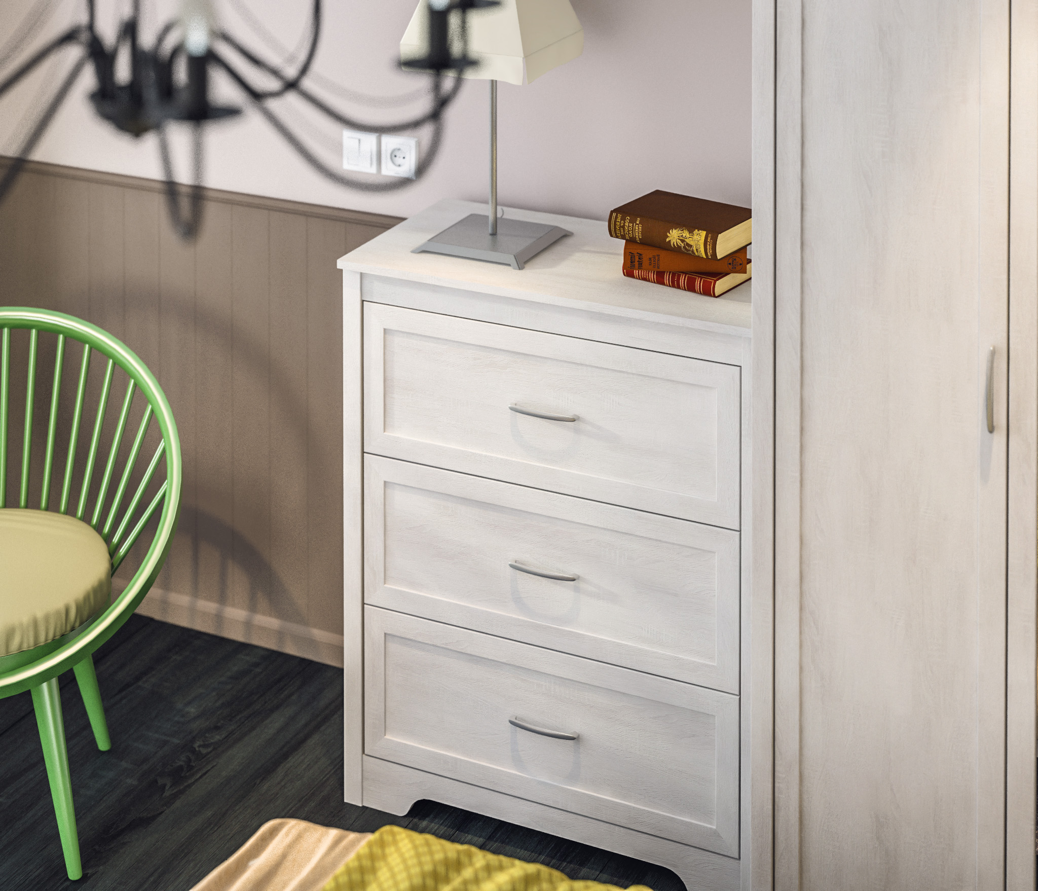 Комод Прованс СБ-2560/1 – оптимальное решение вопроса хранения. Он будет хорошо смотреться в гостиной, прихожей, спальне или в кабинете.¶Комод Прованс имеет довольно компактные габариты – ширина 88 см, высота 108 см и глубина 44 см. Однако его обладатели никогда не жаловались на вместительность. В трех больших выдвижных ящиках можно разместить множество нужных вещей.