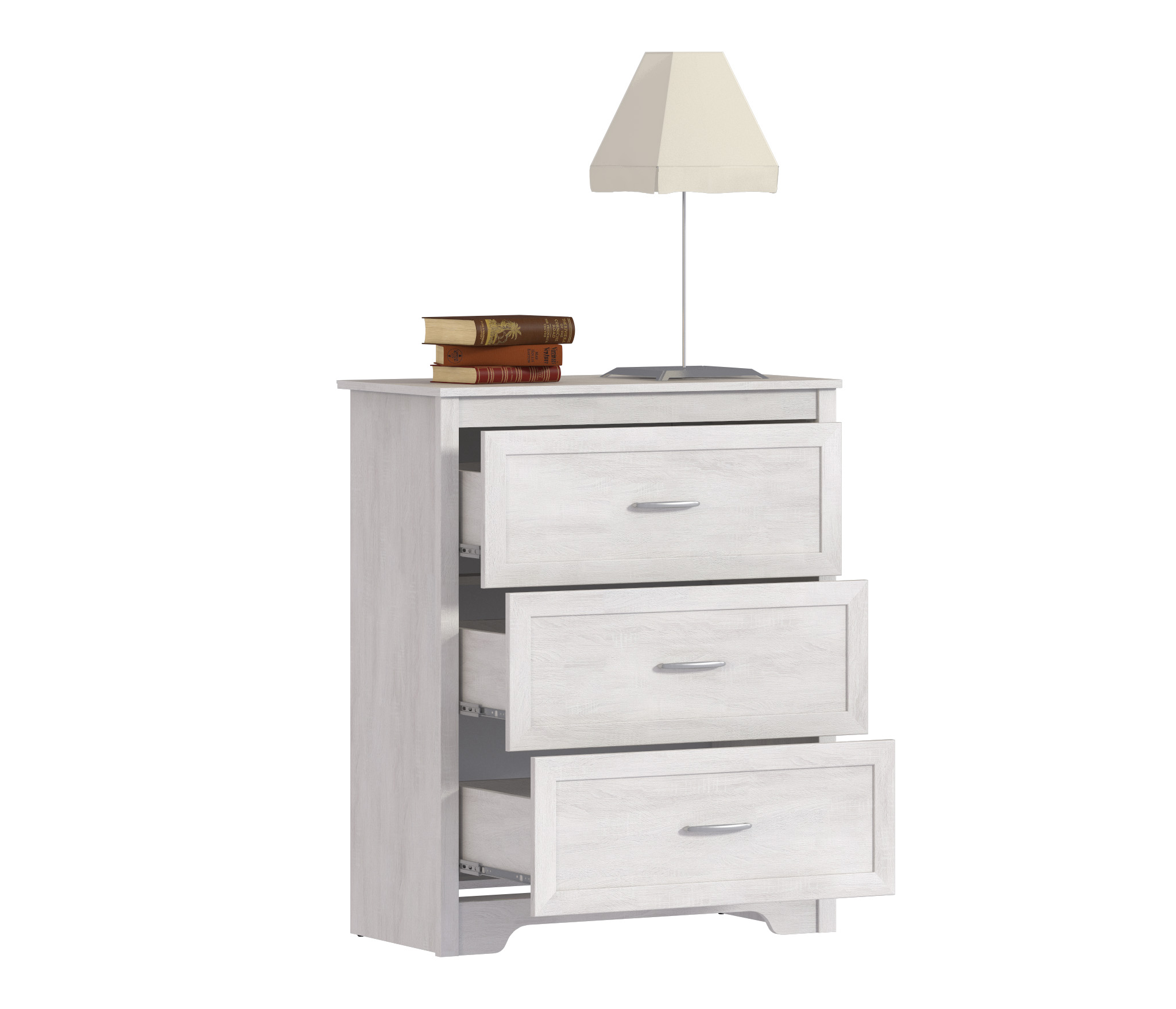 Выполнен комод Прованс из современного высококачественного материала. Цвет отделки Дуб Сонома Белый позволяет вписать данную модель в любой интерьер.