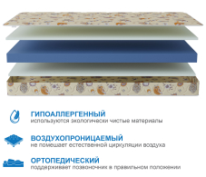 Легкий, прочный, жесткий матрас, который сделан без применения клеящих составов и подойдет даже для самых маленьких и дорогих сонь. Чехол матраса сделан из 100% хлопка.