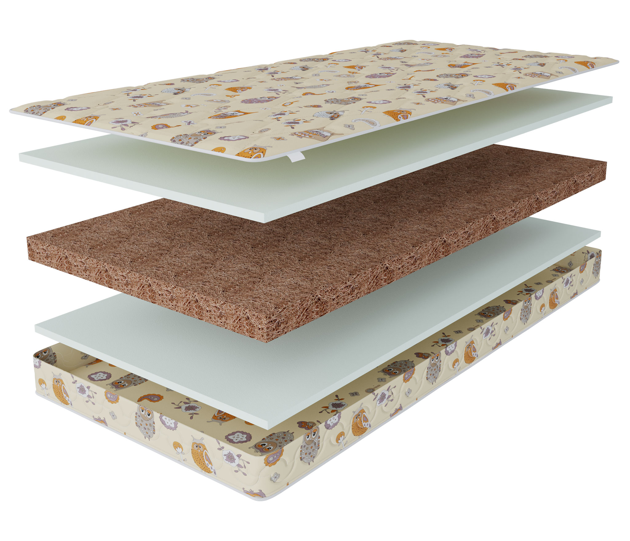 Тонкий, прочный, жесткий матрас, который сделан без применения клеящих составов и подойдет даже для самых маленьких и дорогих сонь. Чехол матраса сделан из 100% хлопка.