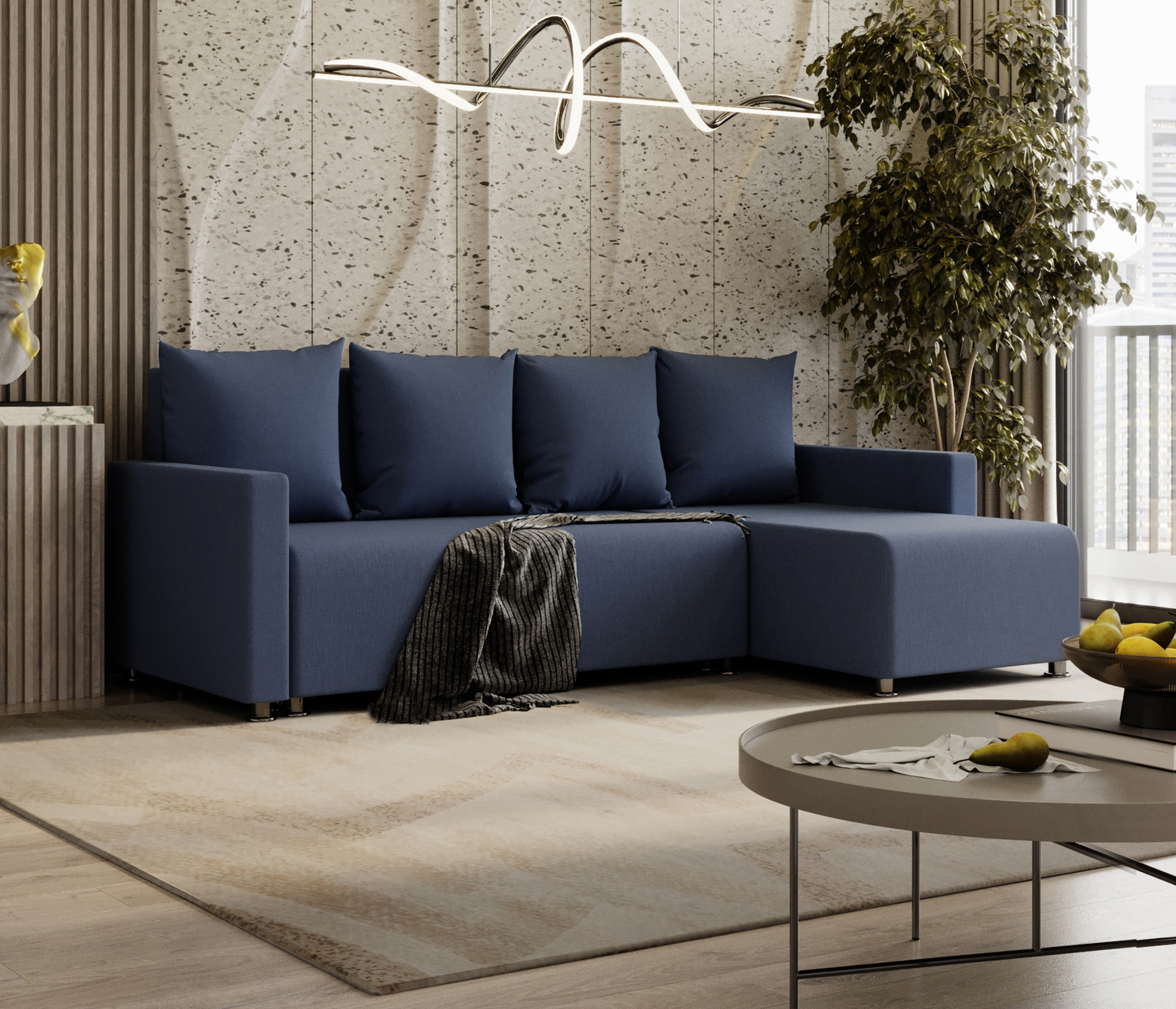 Простой и практичный угловой диван Челси с популярным механизмом трансформации «Еврокнижка», вместительным бельевым ящиком станет центральным интерьером классической гостиной, уголка отдыха в домашнем кабинете или рабочем офисе и полноценной альтернативой двуспальной кровати в гостевой комнате или однокомнатной квартире. Угловая конфигурация модели обеспечивает рациональное использование метража помещения и исключает необходимость приобретения дополнительных мест для сидения, а мягкие подспинные подушки вызывают желание присесть и расслабиться.