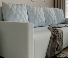 Долговечным и простым в использовании этот угловой диван делает механизм «Еврокнижка», надежно выдерживающий ежедневные трансформации и не требующий усилий для раскладывании - подушки убираются, центральная часть приподнимается и выдвигается вперед, а в освободившуюся нишу опускается спинка. Мягкие элементы модели созданы на основе упругого и износостойкого мебельного ППУ (пенополиуретана), который не вызывает аллергию, не накапливает пыль, не плесневеет, быстро восстанавливает форму после смятия.