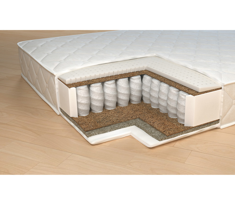 Этот матрас гарантирует оптимальную температуру для сна, на нем не будет холодно или жарко. Термогель, который входит в состав нити из которой делается одна из сторон матраса, гарантирует, что температура матраса будет ниже на 2 градуса цельсия, чем температура тела. Что опять же пойдет на пользу парам, которые не могут договориться о толщине одеяла или о том будет ли открыто окно на ночь. Для каждого температура будет оптимальной. Данное свойство не имеет срока годности и сохранится, даже в случае повреждения самой ткани матраса.В основе матраса лежит блок независимых пружин (мультипакет) 500 пр/м2, благодаря такой плотности пружин, матрас может повторять контуры спящего с максимальной точностью и при этом выдерживать довольно высокие нагрузки. Термовойлок защищает комфортные слои от истирания и соприкосновения с пружинами. В качестве комфортного слоя используется самая жесткая и прочная пена из существующих - (HL4065) толщиной 3 см.