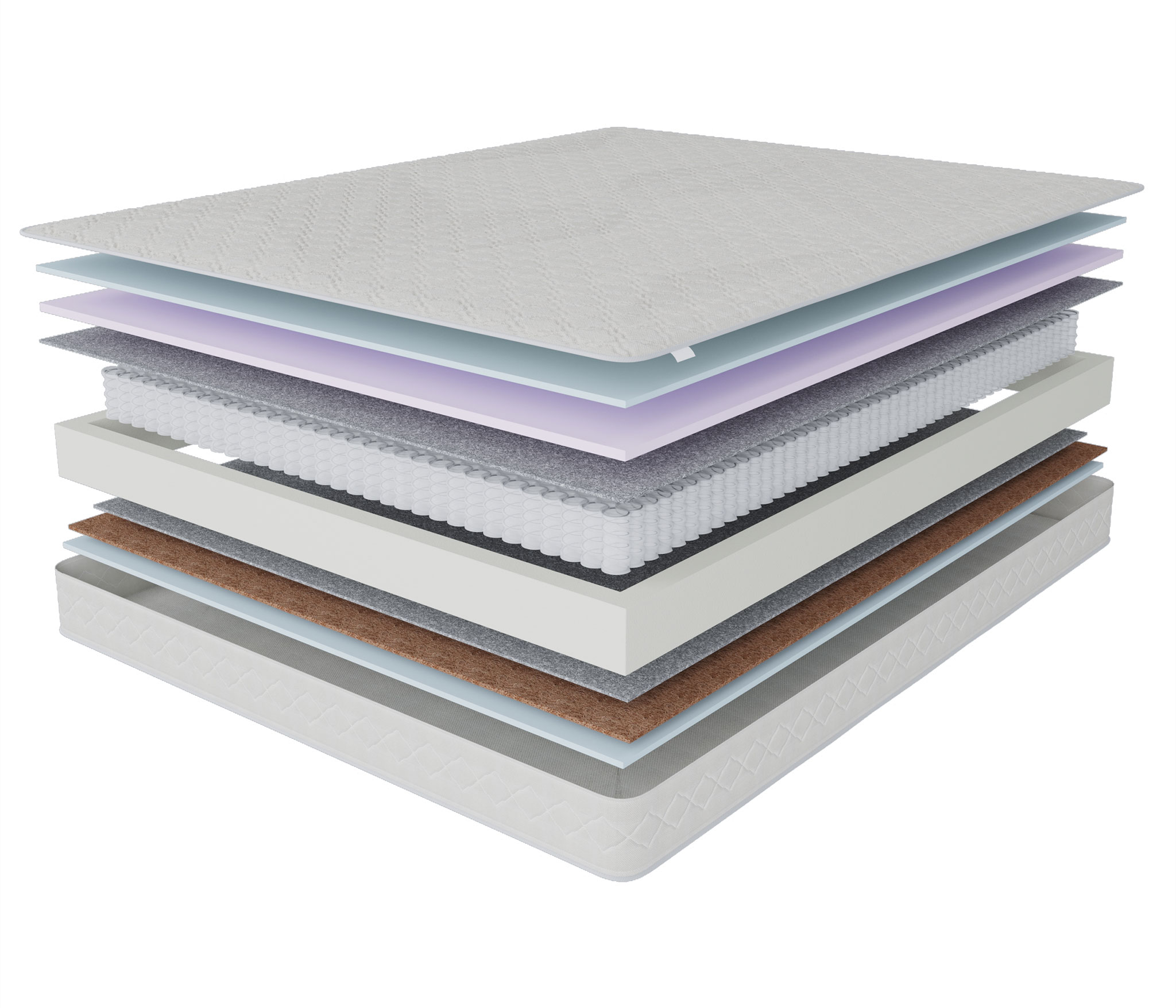 Данная модель сочетает в себе все компоненты, которые позволяют быть матрасу поистине комфортным и универсальным. Блок независимых пружин обеспечивает правильную поддержку позвоночнику и гарантирует расслабление мышц во время сна. Натуральный латекс, который используется в качестве комфортного слоя одной из сторон- считается премиальным наполнительным, который обладает уникальным сочетанием жесткости, упругости и долговечности. Вторая сторона матраса не много жестче, ведь там вместо латекса- латексированный кокосовый лист, который распределяет нагрузку по блоку пружин и придает матрасу необходимую жесткость. Чехол выполнен из плотного жаккарда, в составе, которого не менее 60% хлопка, а стегается он на 15 мм пене, что придает матрасу мягкость, при этом узор стежки подобран таким образом, что его поверхность обладает тем же эффектом микромассажа, что и ячеистые пены. Обращаем ваше внимание на то, что любой матрас отвечает за правильность положения во время сна нижнего и среднего отделов позвоночника, а за правильность положения шейного отдела отвечает правильно подобранная ортопедическая подушка. Рекомендуем использование с защитным чехлом AquaStop. |