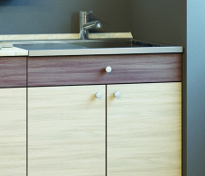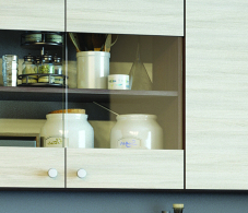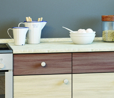 Кухонные гарнитуры с фасадами ЛДСП выглядят очень оригинально, стоят недорого, хорошо обрабатываются и при должном уходе служат десятилетиями. Имеют широкий ассортимент декоров, начиная от имитации натуральной древесины или камня и заканчивая однотонными расцветками.