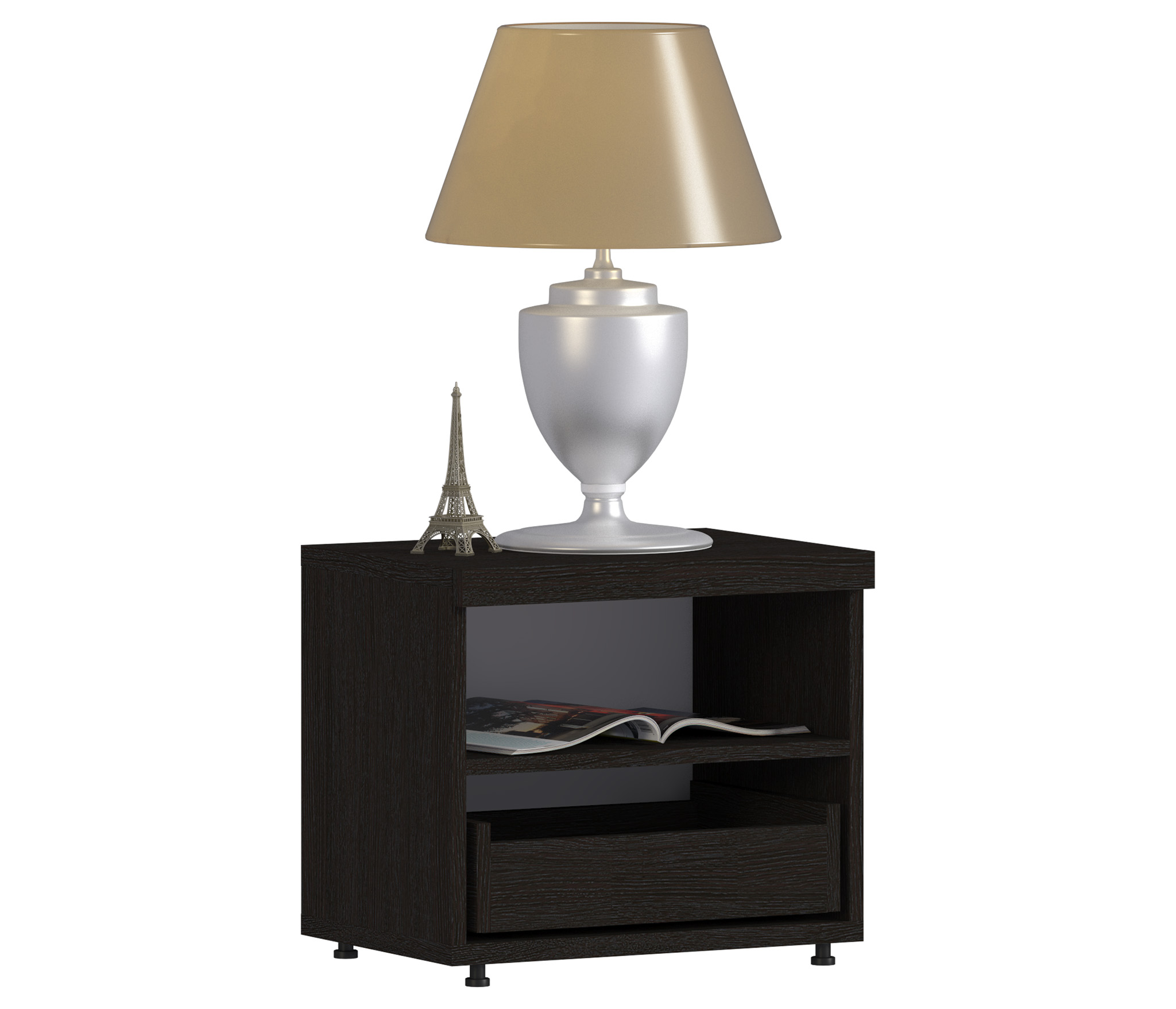 Стильная, современная прикроватная тумба. Она не просто интересного дизайна, но и отлично подобраны цвета. Удобно, что есть открытое пространство и выдвижной ящик. Вместительность у нее нормальная.Заказали две. Качество для такой цены считаю просто отличным. Доставили и собрали в сроки. Будем всем рекомендовать.