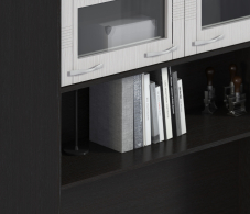 Витрина Сити СБ-861 – стильное и практичное дополнение интерьера спальни, гостиной, или кабинета. Такую витрину рекомендуется дополнить таким элементом из модульной коллекции Сити, как полка под телевизор. Габаритные размеры – ширина 119 см, высота 178 см и глубина 34 см. На открытой полке можно хранить книги, журналы или выставить цветочную композицию. Отделение за остеклёнными дверцами оптимально для хранения декоративной посуды, статуэток и других памятных предметов. Выполнена витрина из современного материала с отделкой в цветах «Дуб Феррара» и «Орденс».