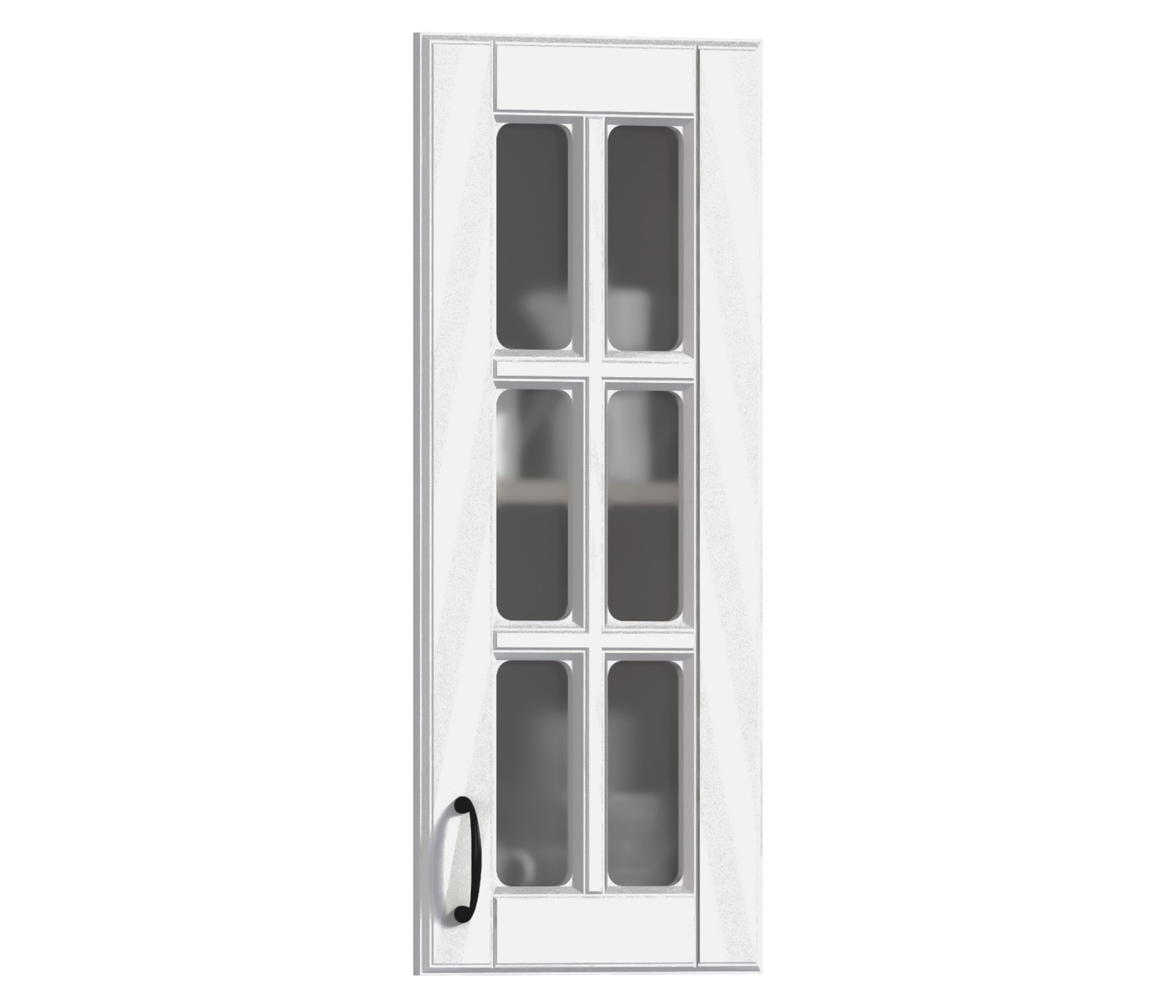 Компактная застекленная дверца для кухонного шкафа. Она открывается справа налево. Она выполнена из качественной прессованной древесины и каленого стекла. Можно выбрать дверцу цвета «дуб Ривер» или «вишня Барселона».