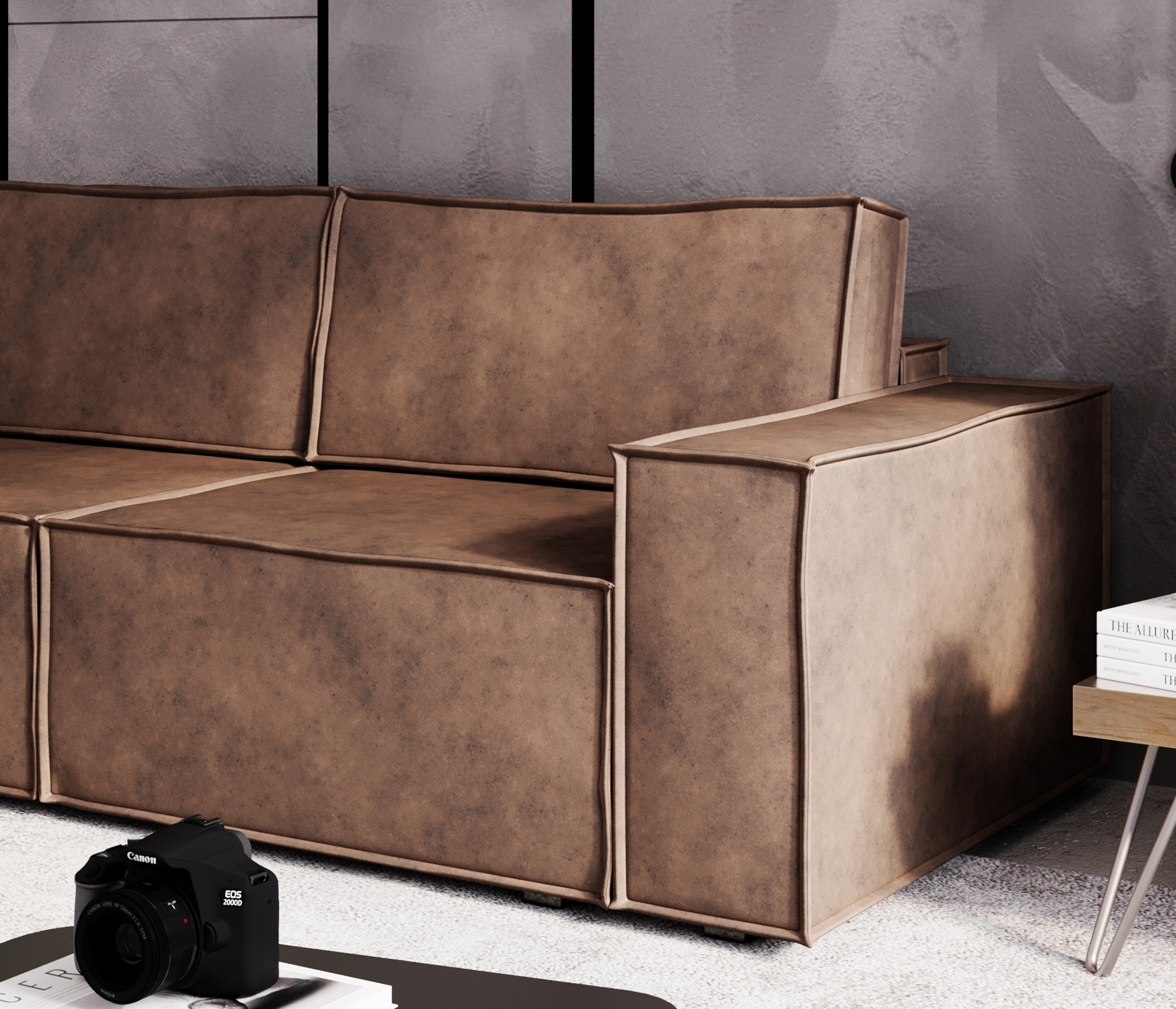 Диван выполнен из однотонного велюра без «пальчикового» эффекта.Antistratching effect позволяет ткани не вытягиваться и долго сохранять первоначальный вид.