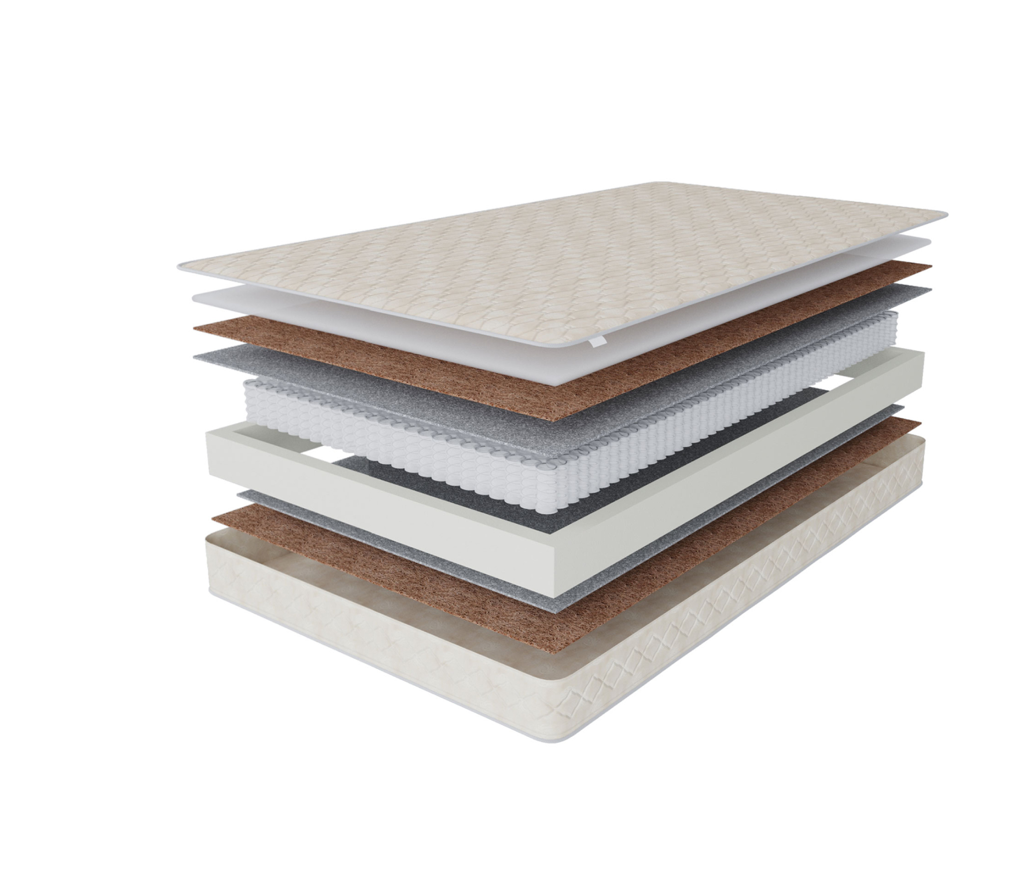- латексированный кокос - компонент, лежащий в основе комфортного слоя. Материал помогает распределять вес пользователя и придает изделию требуемую жесткость;