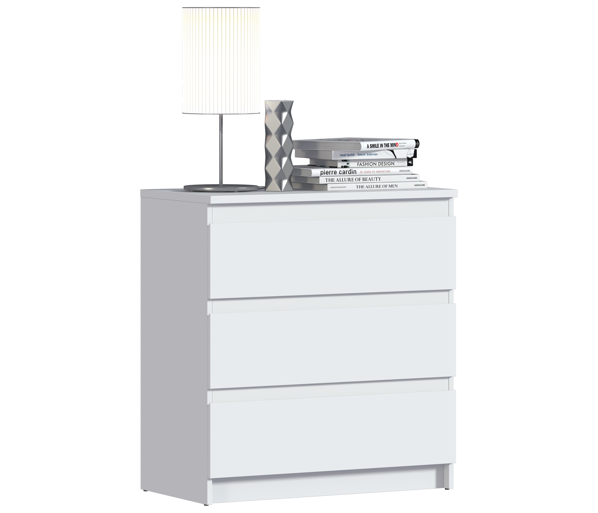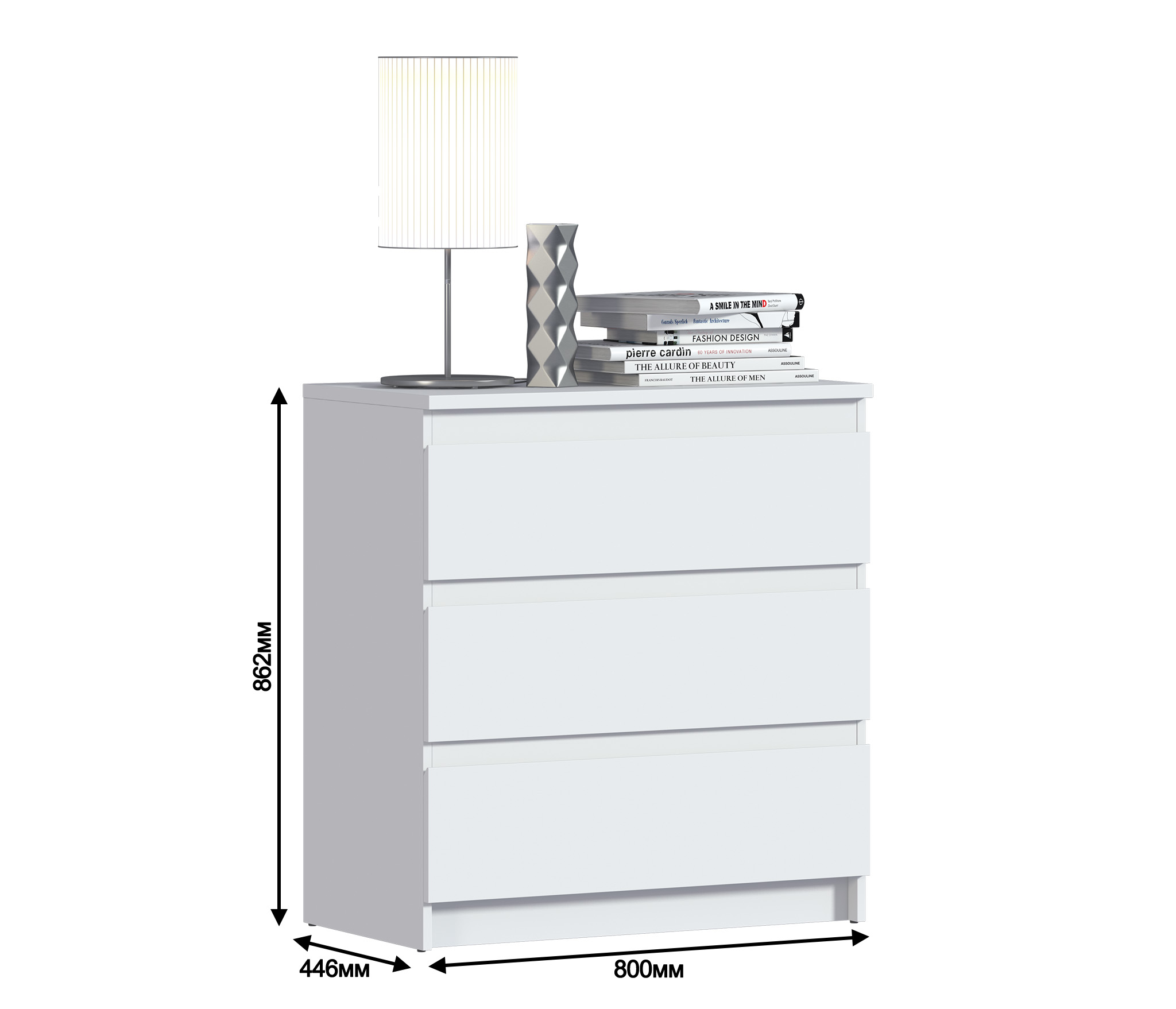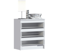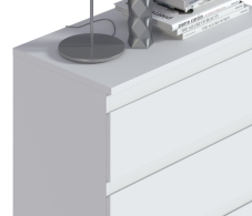 Комод Кито выполнен из современного прочного материала. Благодаря белому цвету и матовому покрытию фасадов выдвижных ящиков, комод Кито смотрится стильно и не громоздко.