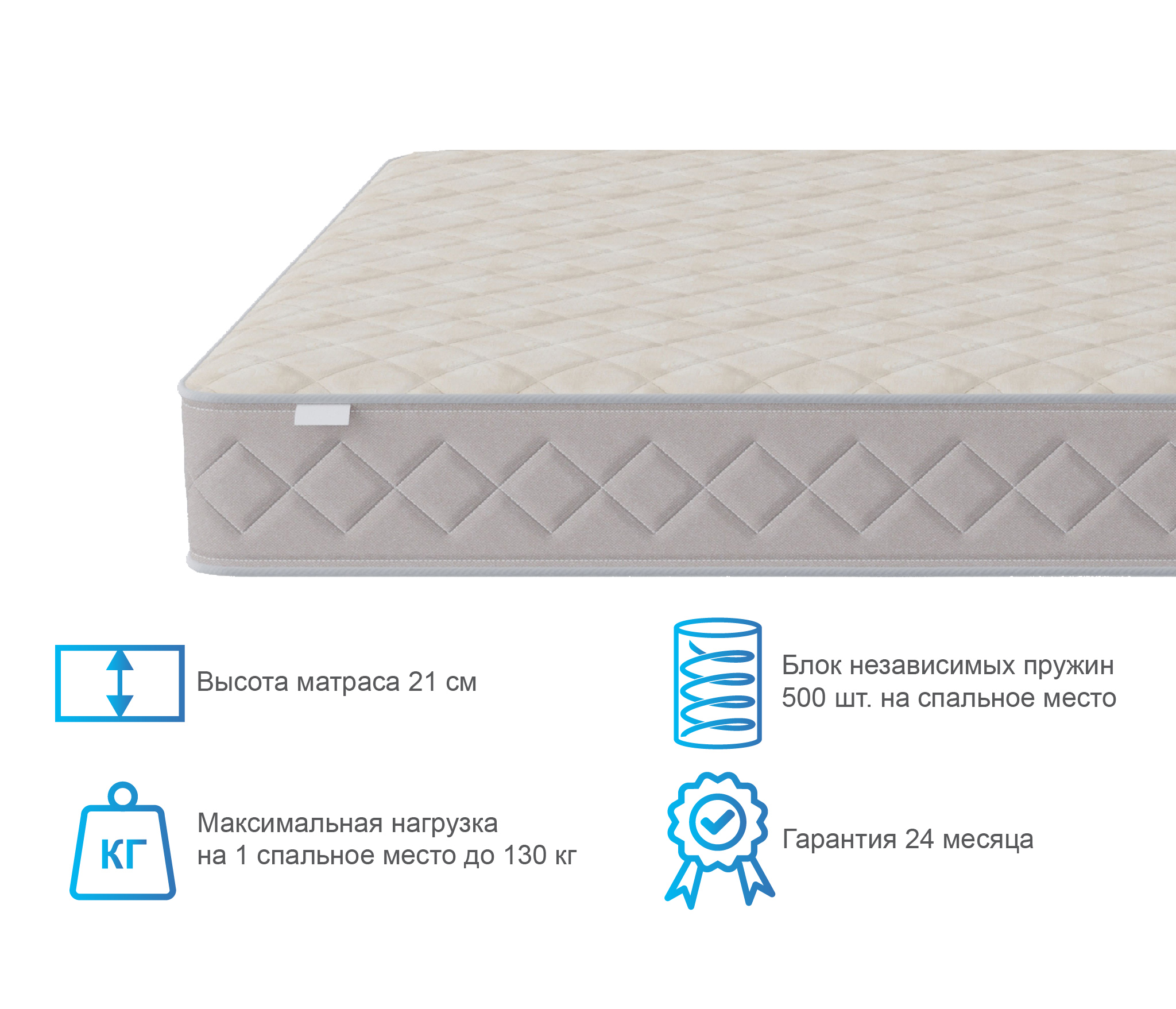 Матрас с ортопедическим эффектом из нашего каталога подходит для двуспальной кровати со спальным местом с широким размерным рядом. Для продления срока эксплуатации и сохранения первоначальных качеств рекомендуем использовать изделие совместно с защитным чехлом.