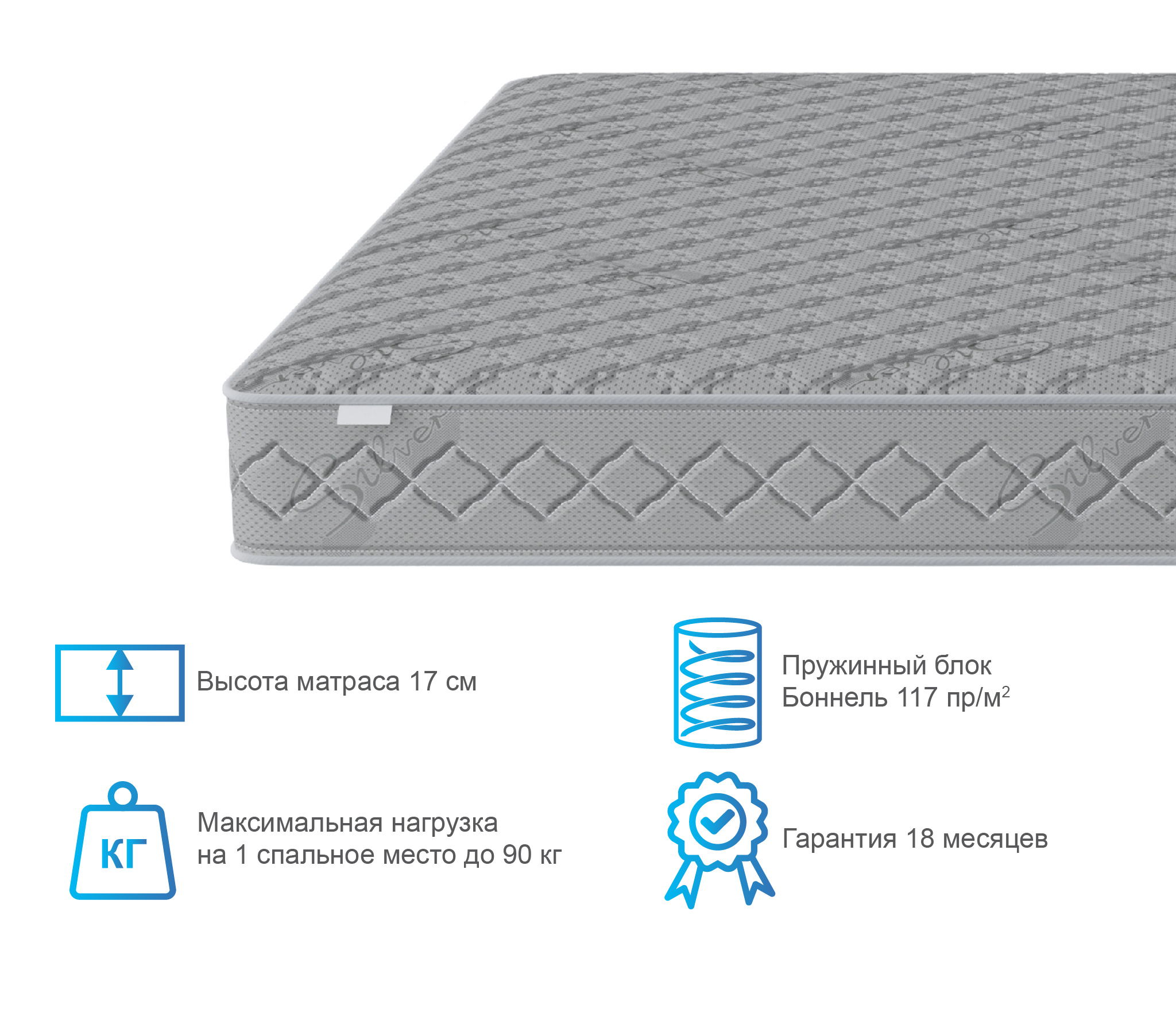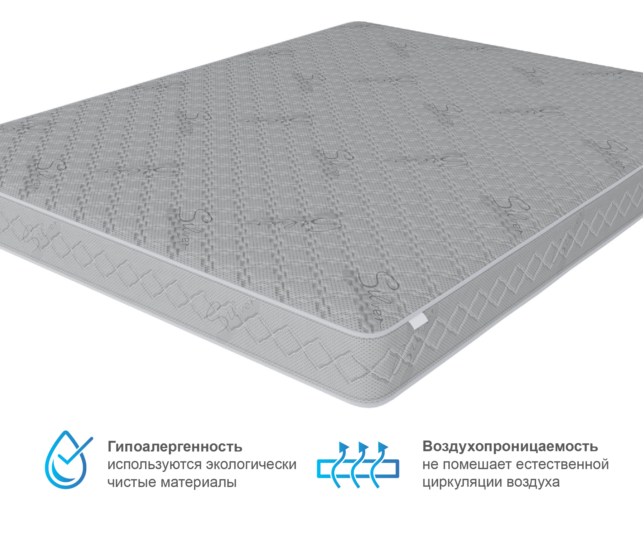 Односпальный матрас дополнен чехлом, изготовленным из ткани синтетический жаккард, стеганный на синтепоне 200 г/м2. Это современное и очень прочное полотно.