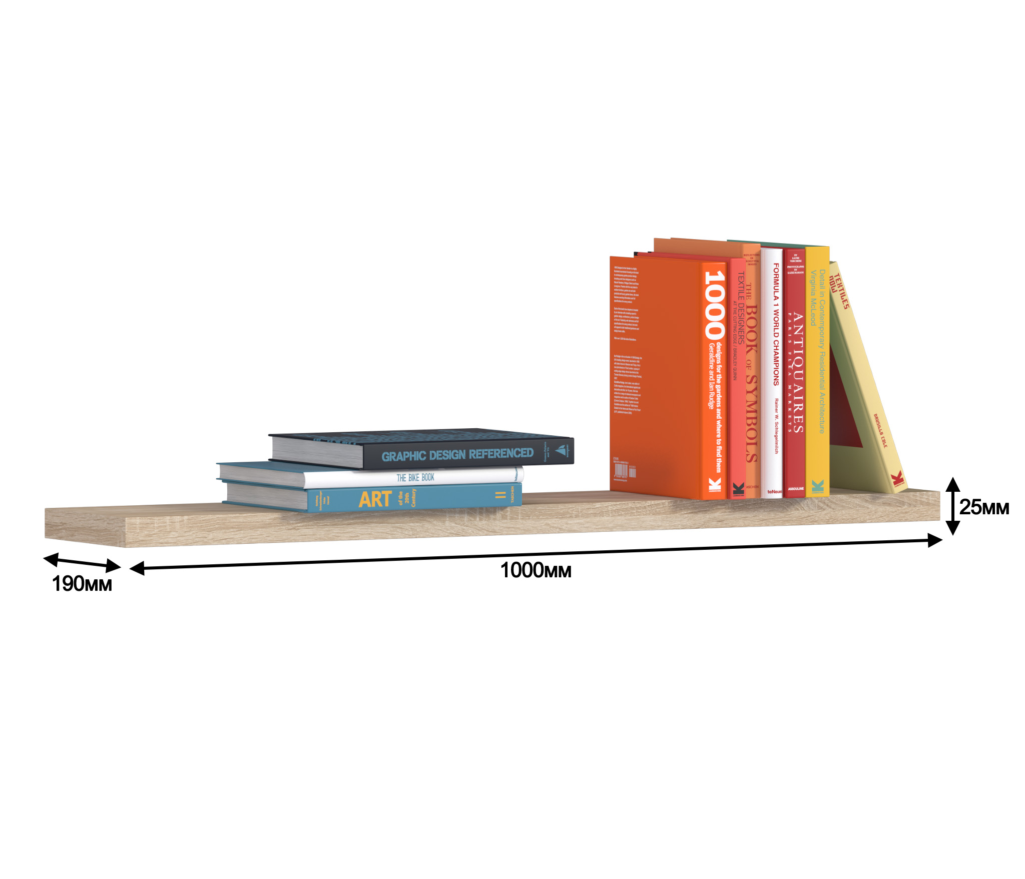 Навесная полка Дионис СБ-2364 будет незаменимым местом хранения или демонстрации различных предметов – книг или сувениров в интерьере любого назначения. Если приобрести несколько полок Дионис СБ-2363, то можно создать не только красивую, но и практичную композицию. Габаритные размеры – ширина 100 см, высота 3 см и глубина 19 см. Выполнена полка из прочного современного КДСП. Цвет отделки – "Дуб Сонома". Полка крепится к стене при помощи дюбелей, которые входят в комплект.