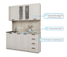 Кухня Агава 1,5 – это популярный современный гарнитур в стиле Прованс. Изящная модель со светлыми фрезерованными МДФ фасадами.