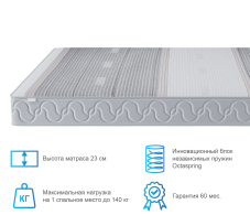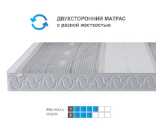 Вы хотели бы проводить время во сне с большей пользой для здоровья? Этот матрас поможет нормализовать фазы сна, ускорить засыпание и поможет замедлить развития хронических заболевания суставов и опорнодвигательного аппарата. Все эти свойства возникают, благодаря слабому магнитному излучению, которое как известно, широко применяется в востановительной медицине (магнитная физиотерапия). В ткань чехла вшиты магнитные полосы, магнитное поле возникающее в результате, положительно влияет на организм, оказывая легкий терапевтический эффект. В качестве комфортного слоя мы используем 2-х сантиметровую пену мемори, под которой находится 3-х см слой пены средней жесткости. Дальше располагается 3 х зональный блок пружин октаспринг с 10 см бортами по периметру из особо жесткой пены, которые не позволят матрасу промяться. Завершает этот блок очень жесткая и прочная пена, которая выполняет функцию платформы и равномерно распределят нагрузку по всей площади матраса. Вторая сторона матраса – это классический пенный беспружинный матрас, каждая сторона матраса работает независимо друг от друга. Эта сторона более жесткая. Таким образом пользователь может быть уверен в своем выборе матраса, когда не уверен какой жёсткости матрас ему требуется. Пружины октаспринг отличаются от обычных пружин тем, что они работают в 3- х направлениях и повторяют контуры спящего с точностью до нескольких миллиметров, в отличие от обычных пружин, которые используются в большинстве современных матрасов. Диаметр пружин из металла составляет от 3 до 6 сантиметров и такой блок просто физически не может подстраиваться точнее своего диаметра. Многие не понимают почему это так важно и зачем эта точность, для этого достаточно потрогать плечо или бедро и нащупать самое жесткое место, это как раз те точки на которые приходится основная нагрузка во время сна. Вы поймете , что их площадь меньше чем площадь пружины с диаметром 6 см. Поэтому ортопедический эффект от матрасов с такими пружинами ниже. Если сжимать пружину октаспринг она подстраивается только там, где происходит давление, обычная же пружина работает все своей площадью. В данной модели использованы 2 типа пружин, отличаются они плотностью и жесткостью пены, зоны располагаются таким образом, чтобы плечи и таз оказывались на более жестких пружинах, из-за того, что в этих зонах нагрузка наиболее высокая. Это универсальный матрас, в основе которого лежат самые современные и передовые технологии. Сочетающий в себе плюсы матрасов октаспринг и полностью беспружинных моделей.Для сохранения свойств и внешнего вида матраса, а также для разительного увеличения срока службы матраса рекомендуем использование матрас с защитным чехлом АкваСтоп. Любой матрас отвечает за правильность положения во время сна лишь нижнего и среднего отделов позвоночника, а за шейный отдел отвечает правильно подобранная ортопедическая подушка.