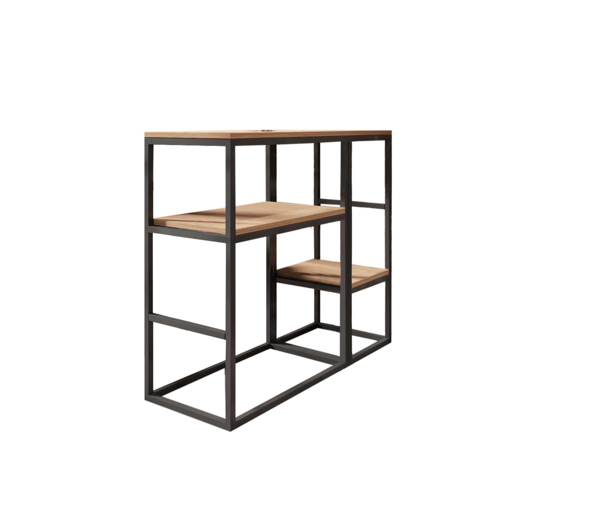 Каркас: профильная труба 20х20 мм.Прочное полимерно-порошковое покрытие черного, белого и серого цвета Дерево: массив сосны 20 мм, покрытое специальным маслом для мебели, цвета на выбор: бесцветный, белый, серый, махагон, орех, морёный дуб, черный, клён, черный графит, голубой графит, темное золото графит, золото графит.